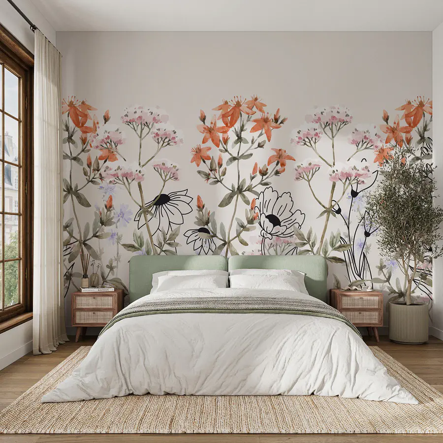 Φανταστείτε να μπαίνετε σε ένα δωμάτιο που μοιάζει με έναν γαλήνιο κήπο, ακόμη και τις πιο πολυάσχολες ημέρες. Αυτή η τοιχογραφία, “Ντελικάτα άνθη σε γαλήνιο φόντο”, ζωντανεύει ένα μπουκέτο ζωηρών λουλουδιών που μοιάζουν σχεδόν να λικνίζονται στο αεράκι. Τα απαλά χρώματα και οι ρέουσες γραμμές κάνουν να νιώθετε ότι περιβάλλεστε από τα καλύτερα της φύσης. Ιδανικό για ένα άνετο σαλόνι ή ένα ηρεμιστικό υπνοδωμάτιο, ψιθυρίζει χαλάρωση σαν ένα ωραίο φλιτζάνι τσάι μετά από μια κουραστική μέρα. Απλά φανταστείτε να κουλουριάζεστε με ένα βιβλίο, αυτά τα λουλούδια να σας ανεβάζουν τη διάθεση και ίσως να προσκαλέσετε και μια ή δύο πεταλούδες… ή τουλάχιστον το περίεργο βλέμμα της γάτας σας! Ποιος θα μπορούσε να φανταστεί ότι ένας τοίχος μπορεί να είναι τόσο φιλόξενος;