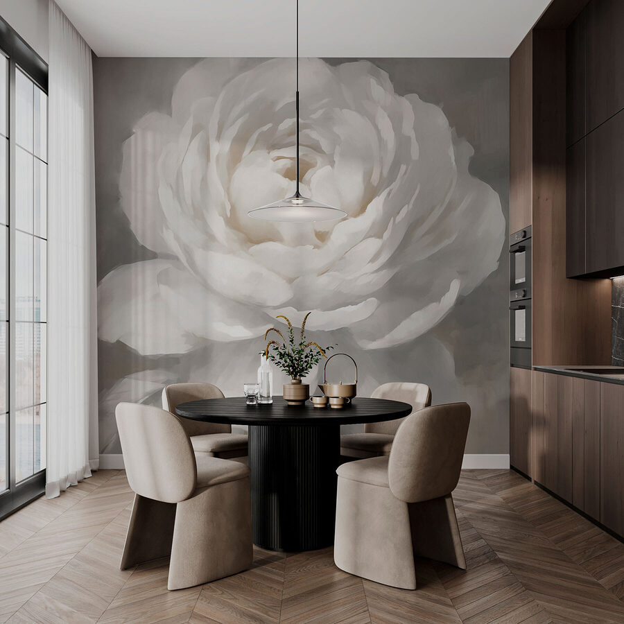 Μπείτε σε μια γαλήνια ατμόσφαιρα με αυτή την τοιχογραφία τοίχου με ένα ονειρεμένο λευκό λουλούδι, που συνδυάζεται επιδέξια με απαλές, φυλλώδεις πινελιές. Φανταστείτε να μπαίνετε σε έναν χώρο που μοιάζει με απαλό αεράκι ένα ανοιξιάτικο πρωινό. Οι ήρεμοι τόνοι δημιουργούν μια φιλόξενη ατμόσφαιρα ιδανική για να χαλαρώσετε μετά από μια κουραστική μέρα. Είναι σχεδόν σαν το λουλούδι να ψιθυρίζει μυστικά ηρεμίας και ανανέωσης. Είτε τοποθετημένη σε μια ζεστή γωνιά ανάγνωσης είτε σε έναν αεράτο διάδρομο, αυτή η τοιχογραφία μεταμορφώνει την καθημερινότητα σε κάτι ξεχωριστό. Είναι το είδος της διακόσμησης που θα μπορούσε να εμπνεύσει ακόμη και μια μικρή ονειροπόληση – ποιος δεν θα μπορούσε να χρησιμοποιήσει λίγο από αυτό; Βυθιστείτε σε έναν κόσμο όπου η φύση και η τέχνη χορεύουν μαζί, κάνοντας τους τοίχους σας να τραγουδούν.