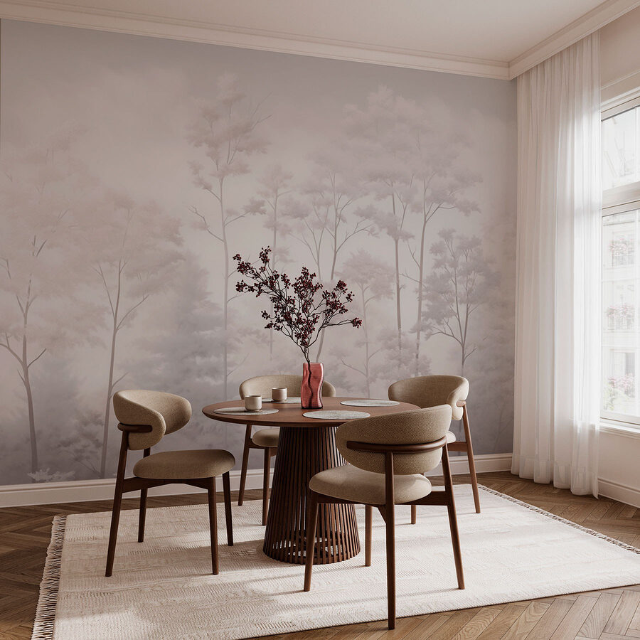 Μεταμορφώστε το χώρο σας με τη γαλήνια γοητεία αυτής της τοιχογραφίας που απεικονίζει μια ομάδα δέντρων τυλιγμένη σε απαλή ομίχλη. Φανταστείτε να μπαίνετε σε ένα ονειρικό δάσος κάθε φορά που περνάτε από εκεί. Οι απαλές αποχρώσεις και η ομιχλώδης ατμόσφαιρα δημιουργούν μια ηρεμιστική ατμόσφαιρα – ιδανική για να χαλαρώσετε μετά από μια κουραστική μέρα ή να προσθέσετε μια πινελιά φύσης στο σπίτι σας. Είναι σαν να έχετε μια ειρηνική απόδραση ακριβώς στον τοίχο σας. Επιπλέον, είναι ένα εξαιρετικό στοιχείο για συζήτηση! Οι φίλοι σας θα παραμιλούν για τη μοναδική σας επιλογή διακόσμησης. Ποιος να φανταζόταν ότι ένα μάτσο δέντρα θα μπορούσε να είναι τόσο γοητευτικό;