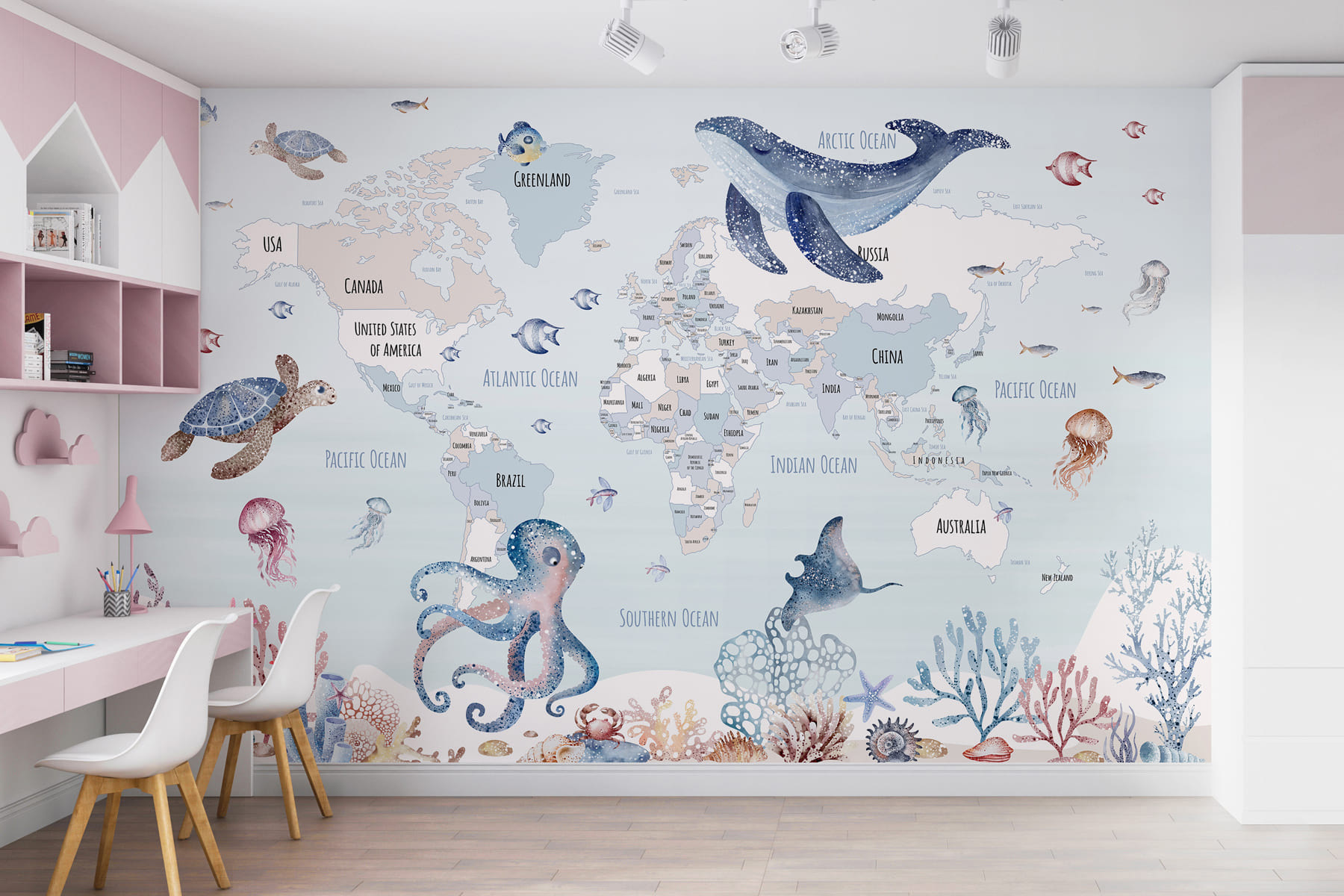 Μεταμορφώστε έναν απλό τοίχο σε μια ζωντανή περιπέτεια με αυτό το απολαυστικό “Ταπετσαρίες Map of the World with Sea Animals”. Είναι σαν να κάνετε μια βόλτα κάτω από τη θάλασσα χωρίς να βρέξετε τα πόδια σας! Ιδανική για παιδιά ή για οποιονδήποτε έχει ακόμα παιδική καρδιά, αυτή η τοιχογραφία προσθέτει μια βουτιά χρώματος και περιέργειας σε κάθε δωμάτιο. Φανταστείτε αυτά τα περίεργα ματάκια να φωτίζονται καθώς εντοπίζουν μια μέδουσα εδώ και μια χελώνα εκεί. Δεν είναι απλώς διακόσμηση, αλλά κεντρίζει τη φαντασία και την απορία. Απλά φανταστείτε το – μια ζεστή γωνιά ανάγνωσης ή μια περιοχή παιχνιδιού, όπου κάθε ματιά στον τοίχο εμπνέει όνειρα για ωκεάνιες αποδράσεις. Είναι διασκεδαστικό, είναι εκπαιδευτικό, και μπορεί ακόμη και να προκαλέσει λίγη περιπλάνηση. Γιατί να μην προσκαλέσετε τον ωκεανό σε έναν αγαπημένο σας χώρο;