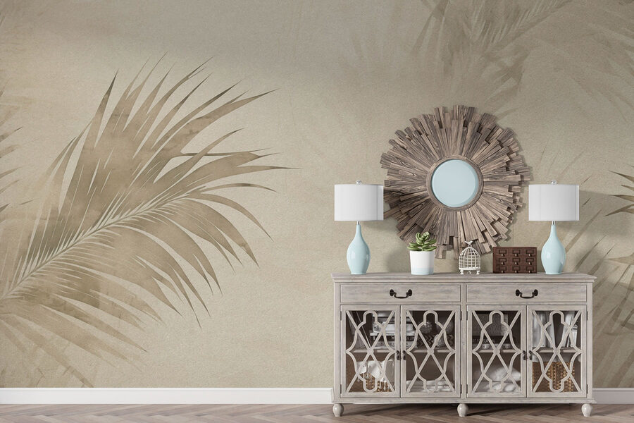 Ταπετσαρίες Απαλές παλάμες σε ουδέτερο φόντο (Κωδικός προϊόντος: w03534)