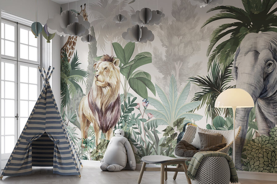 Μεταμορφώστε το χώρο σας σε μια χώρα θαυμάτων άγριας ζωής με αυτή την εκπληκτική τοιχογραφία τοίχου με ένα μεγαλοπρεπές λιοντάρι, παιχνιδιάρικα τουκάν και έναν ευγενικό ελέφαντα ανάμεσα σε πλούσια βλάστηση. Είναι σαν να φέρνετε ένα κομμάτι της ζούγκλας στο σπίτι σας. Φανταστείτε να κάθεστε αναπαυτικά και να αφήνετε τα ζωντανά χρώματα να σας κατακλύζουν, νιώθοντας μια αίσθηση ηρεμίας καθώς η φύση ευδοκιμεί στους τοίχους σας. Ιδανική για κάθε δωμάτιο που επιθυμεί λίγη περιπέτεια, αυτή η τοιχογραφία σας προσκαλεί να χαλαρώσετε και να εξερευνήσετε. Ποιος ήξερε ότι η διακόσμηση θα μπορούσε να μοιάζει με ένα μίνι σαφάρι; Κάθε ματιά θα μπορούσε να προκαλέσει χαρά, μετατρέποντας τις συνηθισμένες ημέρες σε εξαιρετικές στιγμές. Είναι το είδος της τέχνης τοίχου που σας κάνει να χαμογελάτε, φέρνοντας την άγρια φύση απευθείας στη ζεστή σας γωνιά.