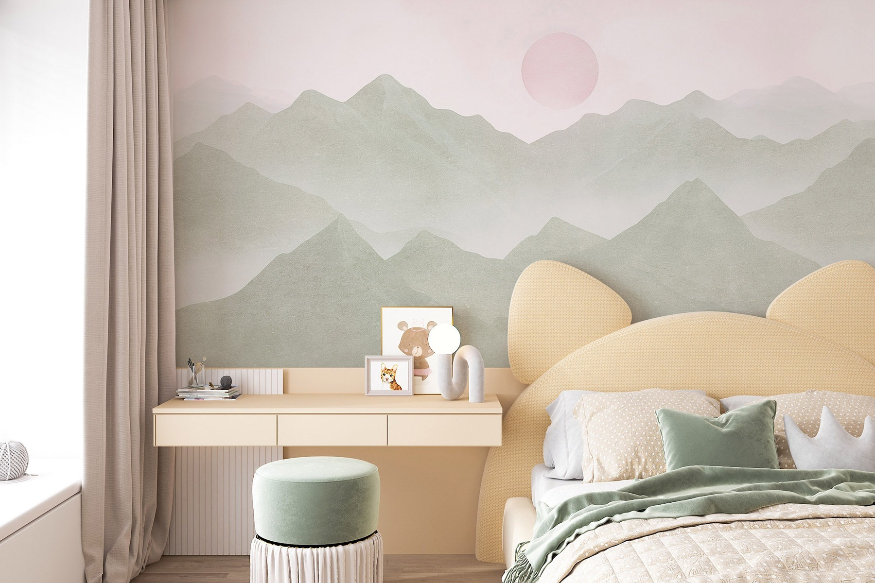 Φανταστείτε να μπαίνετε σε ένα άνετο καταφύγιο ακριβώς στο σαλόνι σας, χάρη σε αυτή την τοιχογραφία μιας οροσειράς που φιλάει τον ορίζοντα καθώς ο ήλιος ξεπροβάλλει. Είναι σαν μια ευγενική πρόσκληση να αναπνεύσετε βαθιά και να χαλαρώσετε. Η απαλή χρωματική παλέτα καθορίζει τη διάθεση, παραπέμποντας σε γαλήνια πρωινά που περνάτε με ένα ζεστό φλιτζάνι καφέ. Φανταστείτε φίλους να συγκεντρώνονται, να ανταλλάσσουν ιστορίες και γέλια, ενώ αυτό το εκπληκτικό σκηνικό προσθέτει ακριβώς τη σωστή ατμόσφαιρα. Δεν είναι απλώς μια ταπετσαρία, είναι ένας καμβάς για δημιουργικότητα, πυροδοτώντας ονειροπολήσεις για περιπέτειες και ήσυχες στιγμές. Ιδανικό για τους λάτρεις της φύσης στην καρδιά!