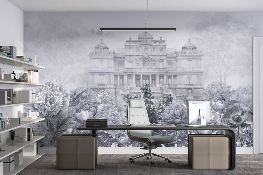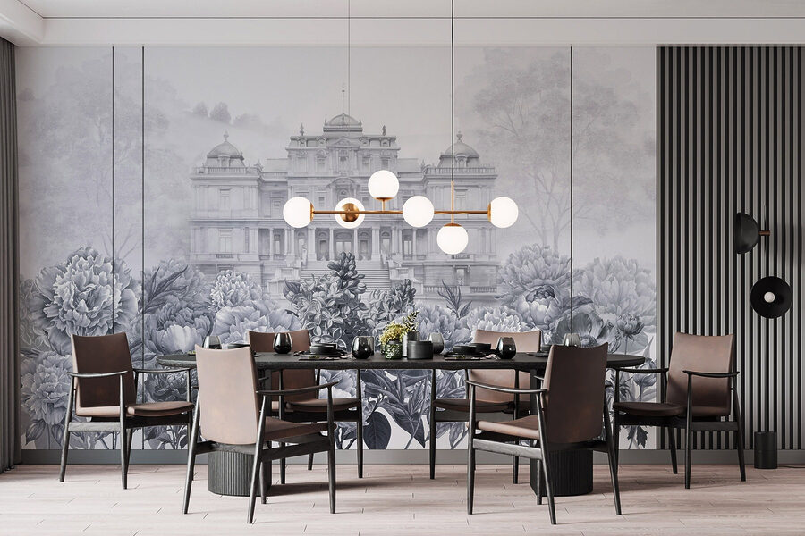 Μπείτε σε έναν κόσμο όπου η κομψότητα συναντά τη φύση με αυτή την εκπληκτική τοιχογραφία. Φανταστείτε ένα μεγαλοπρεπές λευκό κτίριο να ξεπροβάλλει μέσα από έναν καταπράσινο κήπο με παιώνιες, προσκαλώντας ονειροπολήσεις για απογευματινό τσάι σε μια ηλιόλουστη βεράντα. Οι απαλές αποχρώσεις του γκρι δημιουργούν ένα ηρεμιστικό σκηνικό, ιδανικό για να χαλαρώσετε μετά από μια κουραστική μέρα. Οι φίλοι θα σταματήσουν στη μέση της συζήτησης, γοητευμένοι από τη μοναδική ομορφιά. Είναι σαν να φέρνετε μια γεύση από ένα ευρωπαϊκό κτήμα στο σαλόνι σας, αλλά χωρίς την υψηλή τιμή. Τοποθετήστε αυτή την ομορφιά σε έναν τοίχο και δείτε τον χώρο σας να ανθίζει!