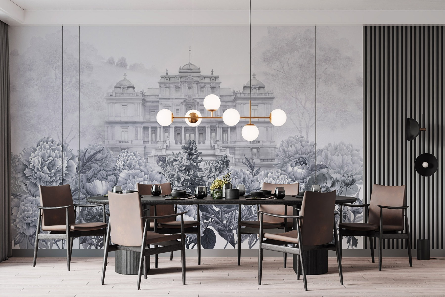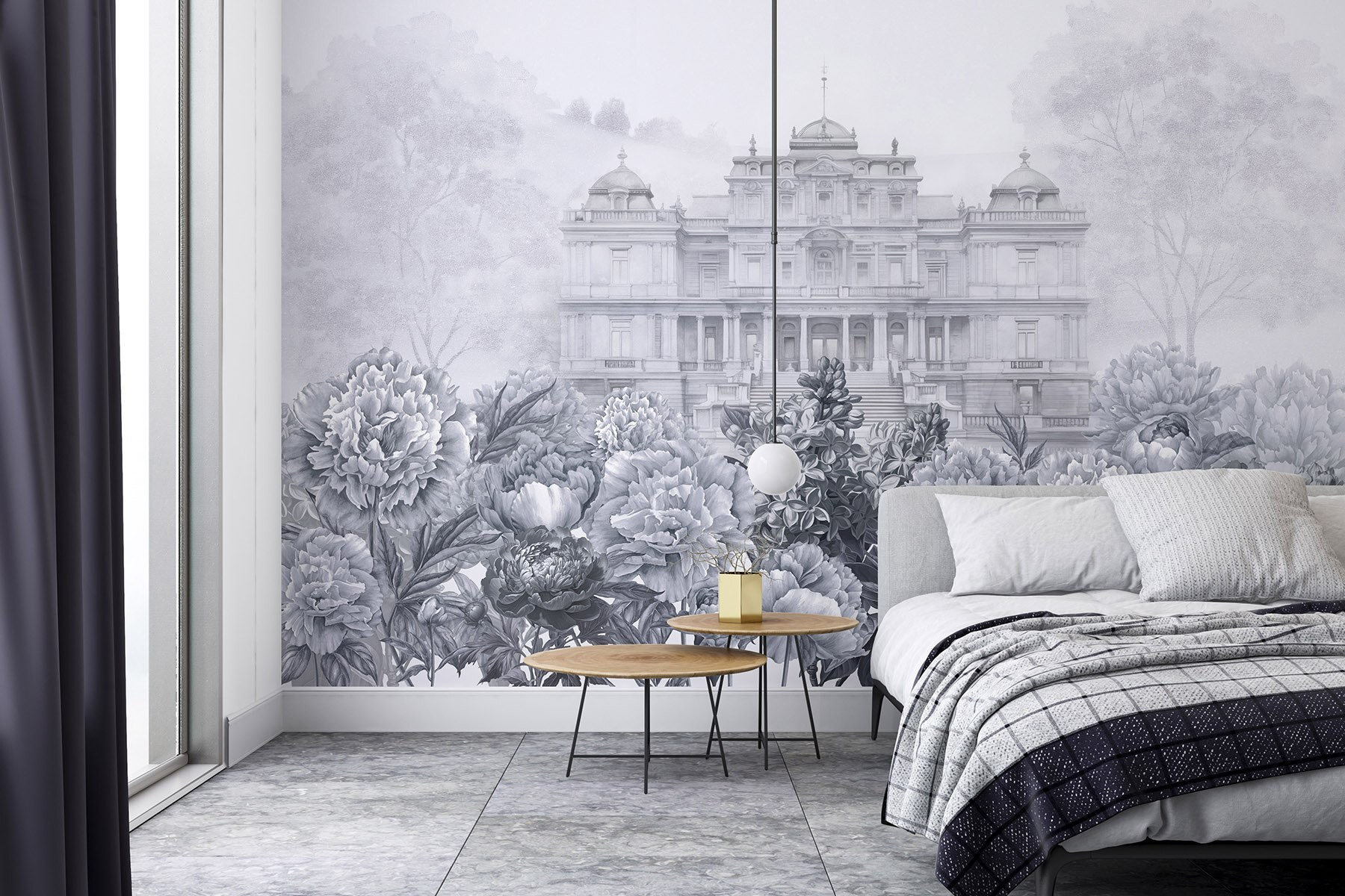 Μπείτε σε έναν κόσμο όπου η κομψότητα συναντά τη φύση με αυτή την εκπληκτική τοιχογραφία. Φανταστείτε ένα μεγαλοπρεπές λευκό κτίριο να ξεπροβάλλει μέσα από έναν καταπράσινο κήπο με παιώνιες, προσκαλώντας ονειροπολήσεις για απογευματινό τσάι σε μια ηλιόλουστη βεράντα. Οι απαλές αποχρώσεις του γκρι δημιουργούν ένα ηρεμιστικό σκηνικό, ιδανικό για να χαλαρώσετε μετά από μια κουραστική μέρα. Οι φίλοι θα σταματήσουν στη μέση της συζήτησης, γοητευμένοι από τη μοναδική ομορφιά. Είναι σαν να φέρνετε μια γεύση από ένα ευρωπαϊκό κτήμα στο σαλόνι σας, αλλά χωρίς την υψηλή τιμή. Τοποθετήστε αυτή την ομορφιά σε έναν τοίχο και δείτε τον χώρο σας να ανθίζει!