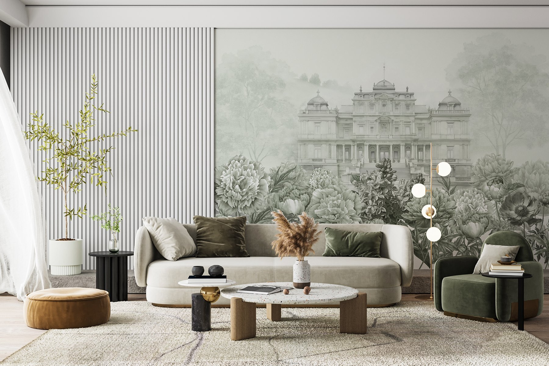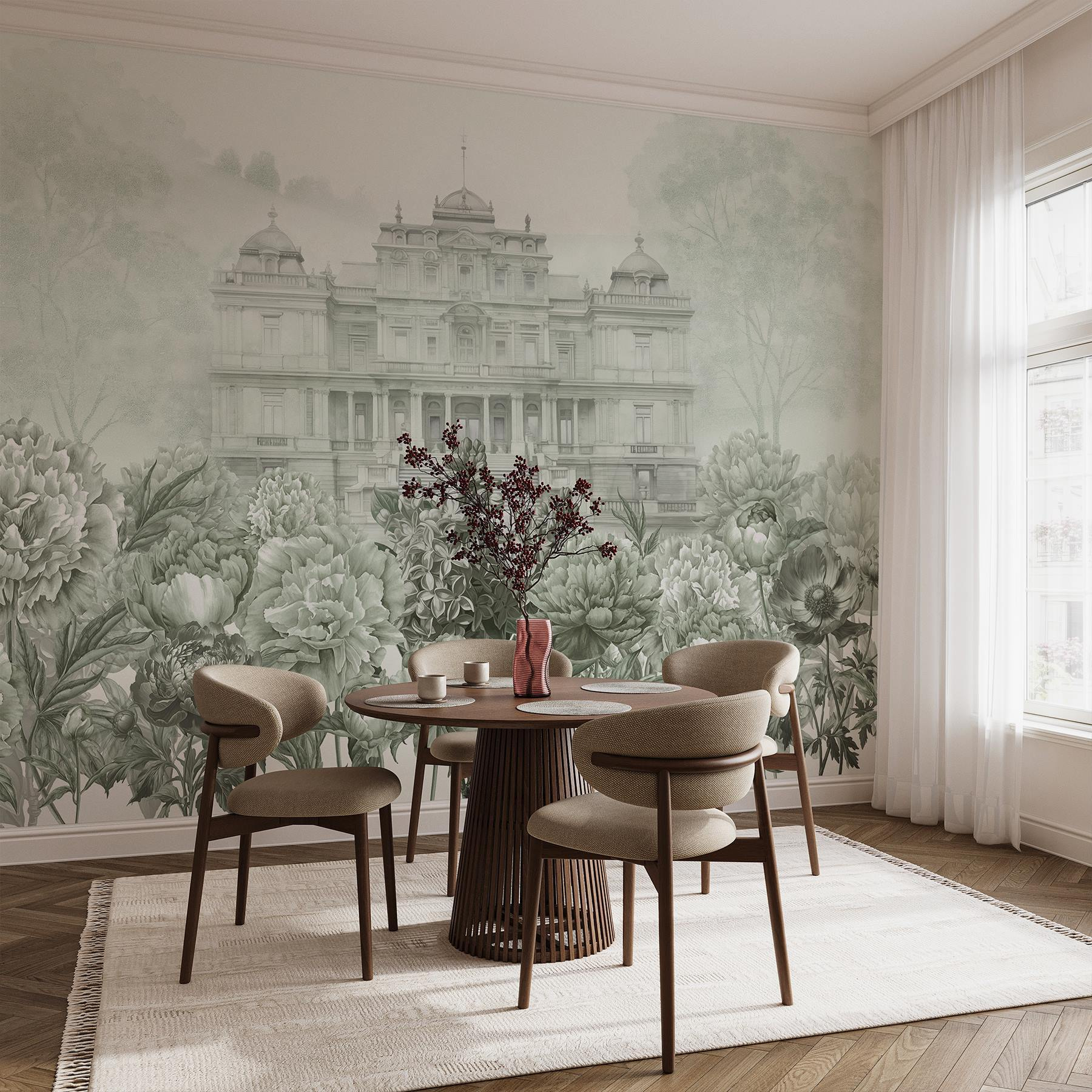 Μεταμορφώστε οποιονδήποτε χώρο με αυτή την εκπληκτική τοιχογραφία τοίχου με ένα μεγαλοπρεπές λευκό κτίριο και ζωντανά λουλούδια. Φανταστείτε να μπαίνετε σε ένα δωμάτιο και να σας υποδέχεται μια όμορφη έκρηξη παιώνιας, ενώ ένα μεγαλοπρεπές σκηνικό προστάζει ήσυχα την προσοχή. Είναι σαν να φέρνετε ένα κομμάτι της γαλήνιας μαγείας του κήπου στους εσωτερικούς χώρους. Ιδανική για όσους αγαπούν λίγη κομψότητα αναμεμειγμένη με τη γοητεία της φύσης, αυτή η τοιχογραφία μπορεί να δημιουργήσει έναν ήρεμο τόνο ή να πυροδοτήσει χαρούμενες συζητήσεις. Απλά φανταστείτε τους φίλους να θαυμάζουν τη λεπτομέρεια ενώ πίνουν τσάι, ή μια ζεστή βραδιά ταινίας να νιώθει λίγο πιο ξεχωριστή. Η τέλεια τελική πινελιά για κάθε σπίτι που ανθίζει κομψά.