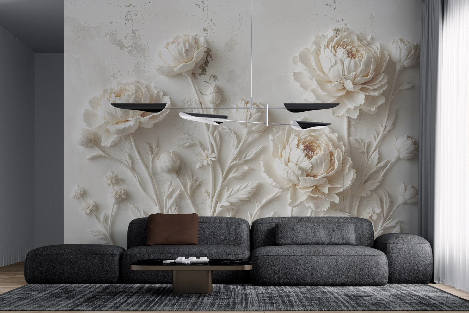 Η μεταμόρφωση ενός χώρου δεν γίνεται πιο εύκολη από αυτή την υπέροχη τοιχογραφία τοίχου με ένα εκπληκτικό λευκό σχέδιο λουλουδιών. Φανταστείτε να ξυπνάτε με απαλές παιώνιες που ξεχειλίζουν από γοητεία και κομψότητα. Είναι σαν να φέρνετε έναν κήπο μέσα στο σπίτι χωρίς την ενοχλητική συντήρηση. Το λεπτό ανάγλυφο και οι περίπλοκες λεπτομέρειες δημιουργούν μια ειρηνική ατμόσφαιρα, ιδανική για να χαλαρώσετε μετά από μια κουραστική μέρα. Οι φίλοι σας θα νομίζουν ότι προσλάβατε έναν φανταχτερό καλλιτέχνη, αλλά θα είναι απλώς το μικρό σας μυστικό. Είτε πρόκειται για μια ζεστή γωνιά είτε για έναν φωτεινό διάδρομο, αυτή η τοιχογραφία ψιθυρίζει εκλέπτυνση – δεν χρειάζεται να κάνετε πάρτι τσαγιού, αλλά σίγουρα δημιουργεί τη διάθεση για ένα τέτοιο πάρτι!