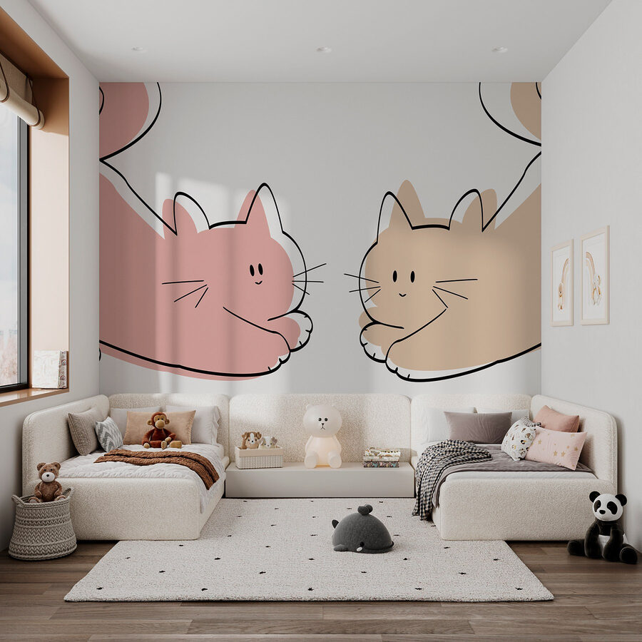 Μεταμορφώστε το χώρο σας με αυτή την υπέροχη τοιχογραφία με δύο άνετες γάτες που απλά χαλαρώνουν. Είναι το είδος των φίλων που θα θέλατε να αράξουν μαζί σας ένα τεμπέλικο κυριακάτικο απόγευμα. Φανταστείτε το σε ένα παιδικό δωμάτιο ή σε μια παιχνιδιάρικη γωνιά στο σπίτι – τα στιγμιαία χαμόγελα είναι εγγυημένα! Τα απαλά χρώματα και ο ιδιόρρυθμος σχεδιασμός προκαλούν συναισθήματα ζεστασιάς και άνεσης, καθιστώντας δύσκολο να μην ρίξετε κρυφά μερικές ματιές. Είναι ιδανικό για να προσθέσετε μια πινελιά γοητείας χωρίς να υπερφορτώσετε το κλίμα. Σε ποιον δεν θα άρεσε μια καθημερινή υπενθύμιση αυτών των αξιολάτρευτων γουναράδων; Φανταστείτε μόνο τις ιστορίες που θα μπορούσαν να ζωντανέψουν με αυτά τα ιδιόρρυθμα γατάκια!