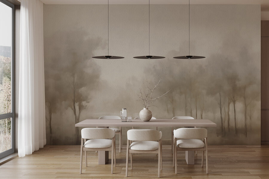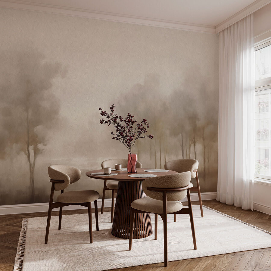 Μεταμορφώστε οποιοδήποτε δωμάτιο με αυτή την ονειρική τοιχογραφία τοίχου που απεικονίζει ένα ομιχλώδες τοπίο με δέντρα. Φανταστείτε να ξυπνάτε και να αισθάνεστε σαν να έχετε μπει σε ένα γαλήνιο, ομιχλώδες πρωινό ακριβώς στον χώρο σας, όπου η ομορφιά της φύσης ψιθυρίζει απαλά. Οι απαλές αποχρώσεις είναι ιδανικές για να προκαλέσουν ήρεμες δονήσεις, είτε πρόκειται για ένα άνετο υπνοδωμάτιο είτε για ένα ζωντανό καθιστικό. Είναι σαν να φέρνετε ένα γαλήνιο δάσος μέσα στο σπίτι χωρίς τα έντομα ή την ανάγκη για μπότες πεζοπορίας! Ιδανική για τους λάτρεις της φύσης ή για οποιονδήποτε κυνηγάει την ήρεμη απόδραση, αυτή η τοιχογραφία μαγεύει κάθε φορά που τη βλέπει κανείς. Βολευτείτε και αφήστε το ομιχλώδες τοπίο να τυλίξει το σπίτι σας σαν μια ζεστή αγκαλιά.