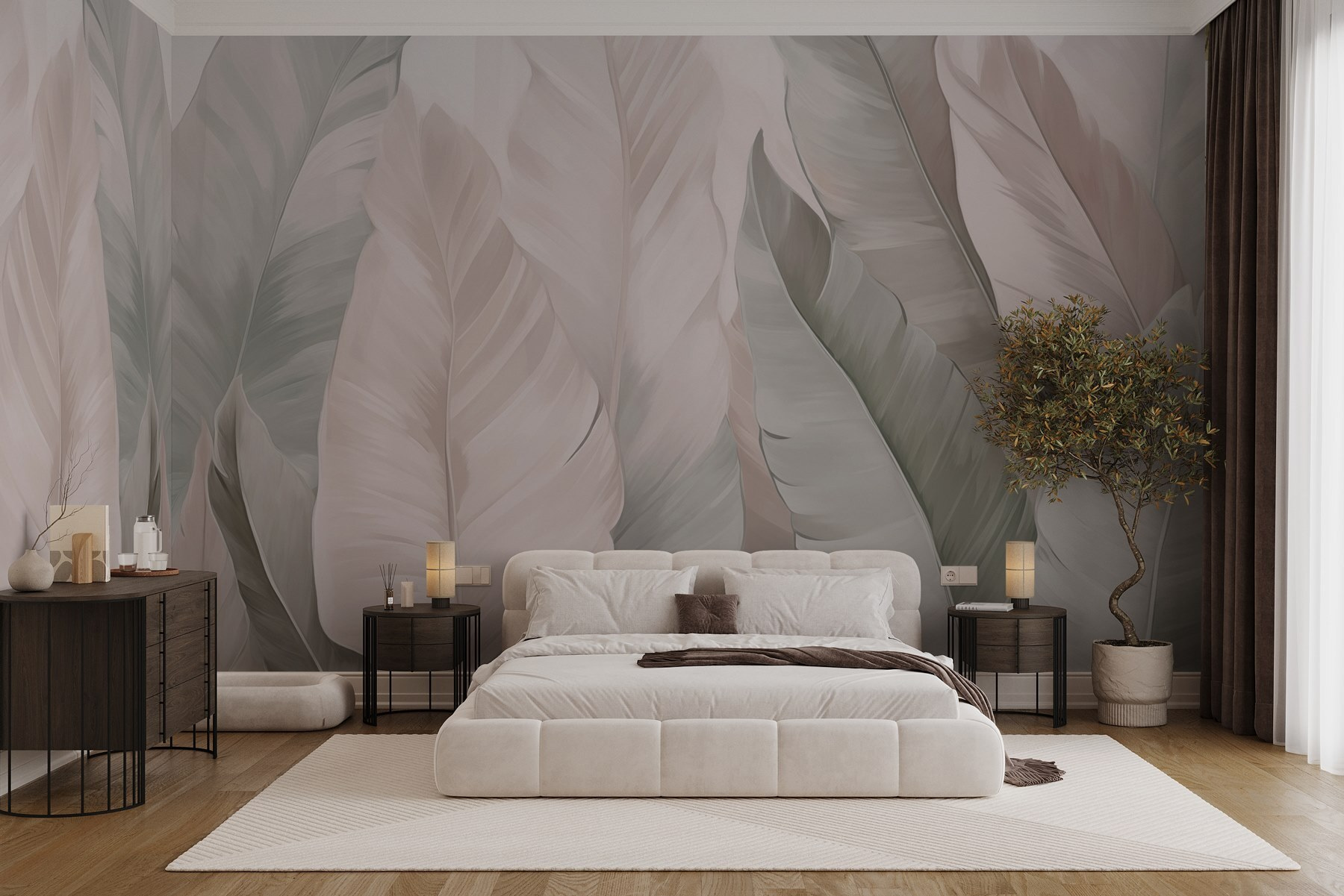 Φανταστείτε αυτό: ένας γαλήνιος χώρος μεταμορφώνεται με την υπέροχη τοιχογραφία “Soft Leaves in Gentle Hues”. Αυτή η ομορφιά δίνει ζωή σε ένα δωμάτιο, κάνοντάς το να μοιάζει με ένα ζεστό καταφύγιο σε ένα δασικό ξέφωτο. Τα απαλά πράσινα και τα καταπραϋντικά ροζ προσκαλούν την ηρεμία, δημιουργώντας ένα σκηνικό που ψιθυρίζει χαλάρωση. Φανταστείτε να πίνετε ένα φλιτζάνι τσάι, περιτριγυρισμένοι από αυτά τα κομψά φύλλα, νιώθοντας σαν να σας συντροφεύει η φύση για μια κουβέντα. Είναι ιδανικό για κάθε σημείο που χρειάζεται λίγη ζεστασιά-σαλόνια, υπνοδωμάτια ή ακόμα και για εκείνη τη μικρή γωνιά ανάγνωσης. Μην εκπλαγείτε αν πιάσετε τον εαυτό σας να ονειροπολεί εδώ!