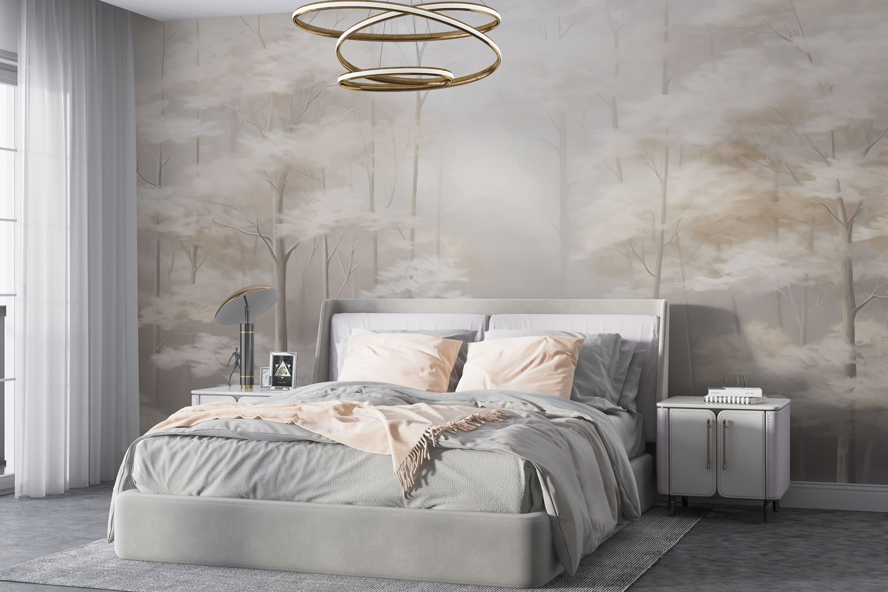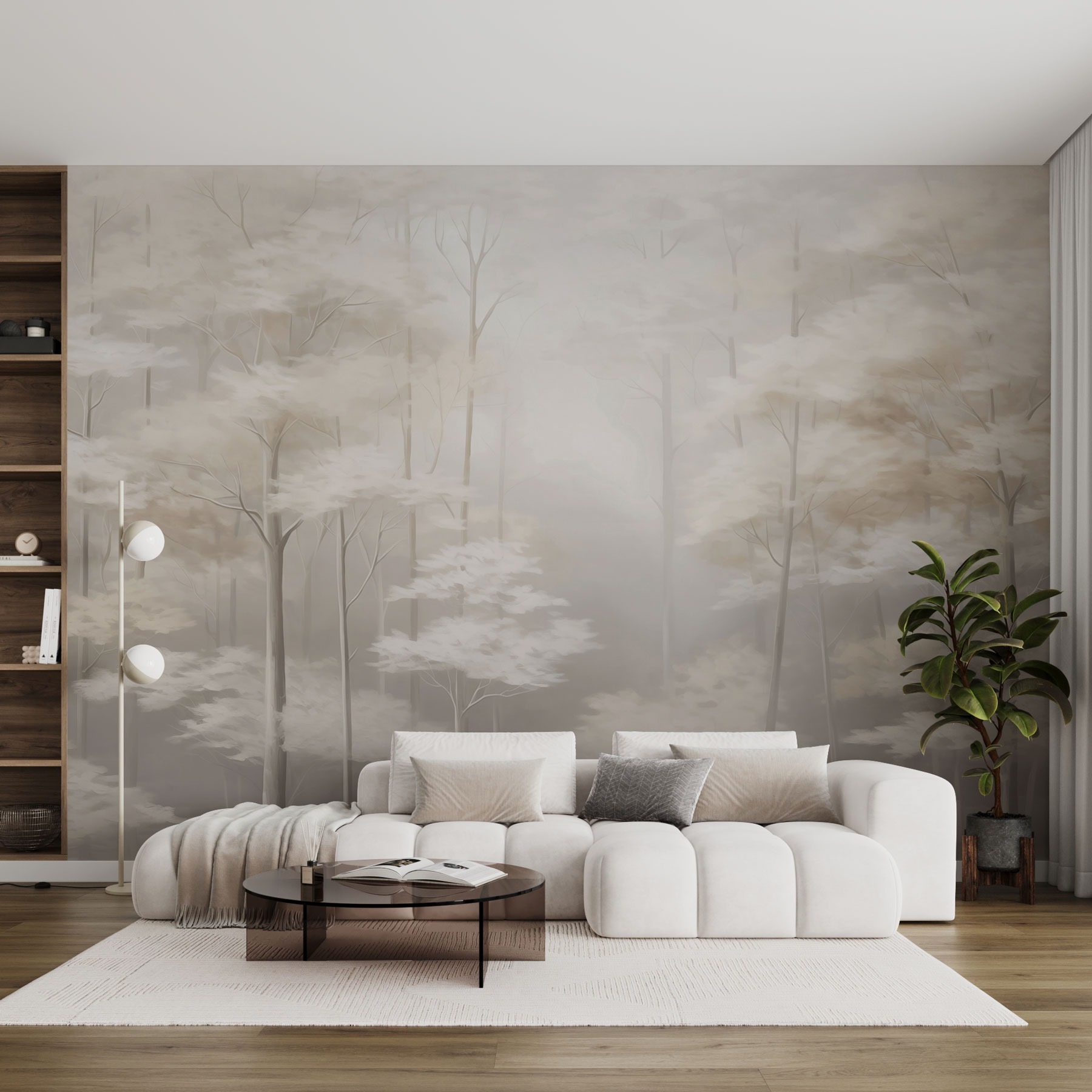 Φανταστείτε να μπαίνετε σε ένα ονειρικό δάσος με ομίχλη, όπου οι απαλές αποχρώσεις και τα ευγενικά δέντρα σας προσκαλούν να περιπλανηθείτε. Αυτή η τοιχογραφία είναι σαν μια ανάσα φρέσκου αέρα για το χώρο σας – ένα τέλειο μείγμα της ηρεμίας της φύσης και της σύγχρονης τέχνης. Φανταστείτε άνετα βράδια που περνάτε σε ένα δωμάτιο που μεταμορφώνεται από αυτό το γαλήνιο σκηνικό. Δεν είναι απλώς μια τοιχογραφία, είναι μια διάθεση. Είτε πίνετε καφέ είτε εργάζεστε στο τελευταίο σας έργο, αυτή η καταπραϋντική σκηνή υπόσχεται να ηρεμήσει το μυαλό και να πυροδοτήσει έμπνευση. Επιπλέον, είναι ένα εξαιρετικό στοιχείο για να ξεκινήσουν οι συζητήσεις με όλους τους καλεσμένους σας. Σε ποιον δεν θα άρεσε να συνομιλήσει για την ομορφιά της φύσης από την άνεση του σπιτιού;