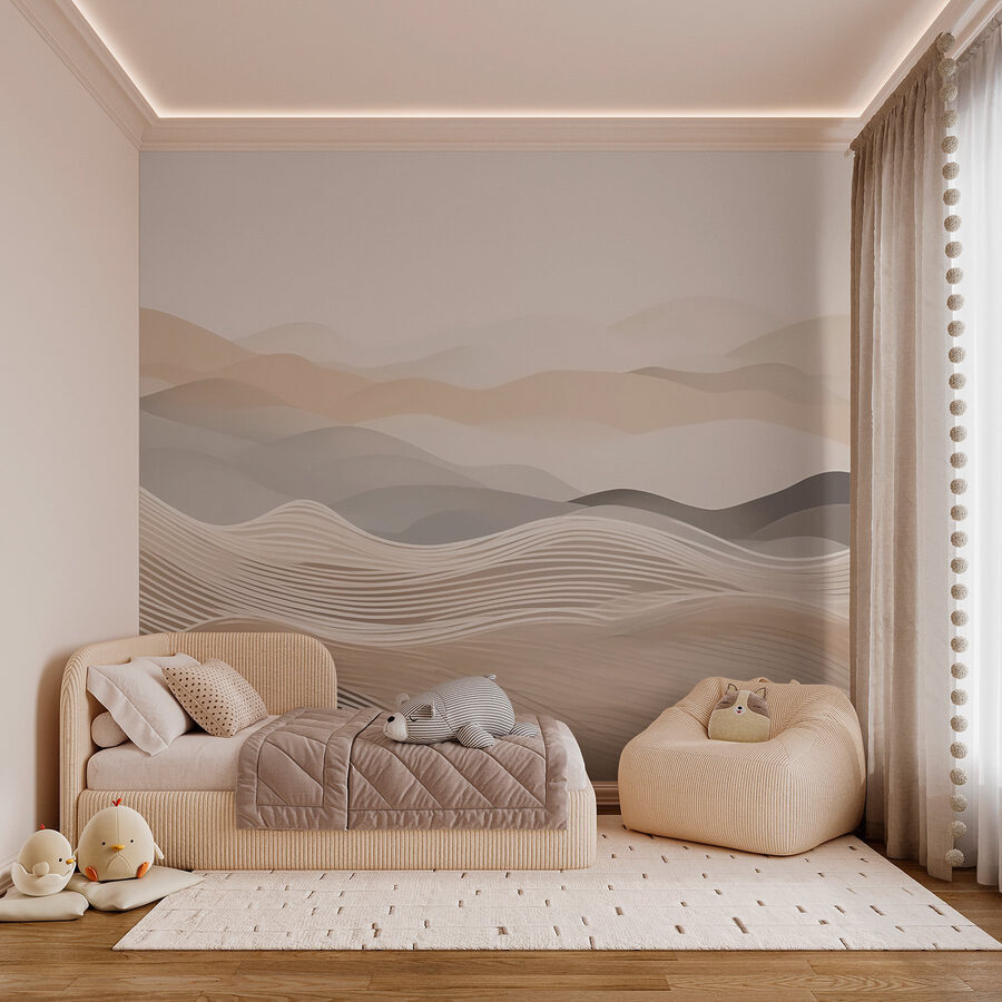 Μεταμορφώστε οποιονδήποτε τοίχο σε μια ζεστή απόδραση με αυτή την τοιχογραφία που απεικονίζει ήπιους λόφους σε απαλά κύματα λευκού και καφέ χρώματος. Είναι σαν να φέρνετε ένα κομμάτι της φύσης στην καρδιά του σπιτιού σας. Φανταστείτε να κουρνιάζετε με ένα καλό βιβλίο ή απλά να πίνετε τον καφέ σας ατενίζοντας αυτές τις καταπραϋντικές καμπύλες. Μοιάζουν σχεδόν να κυματίζουν σαν μια ήρεμη θάλασσα – ιδανικές για τη δημιουργία μιας ειρηνικής ατμόσφαιρας. Οι διακριτικοί τόνοι αυτής της τοιχογραφίας ταιριάζουν υπέροχα με κάθε διακόσμηση, καθιστώντας την ένα φανταστικό σκηνικό για τις περιπέτειές σας στον εσωτερικό σχεδιασμό. Όλα έχουν να κάνουν με την εύρεση της ισορροπίας μεταξύ άνεσης και στυλ, δεν νομίζετε; Προσθέστε μια πινελιά ηρεμίας στο χώρο σας- άλλωστε, ποιος δεν θέλει το σπίτι του να μοιάζει με μια ζεστή αγκαλιά;