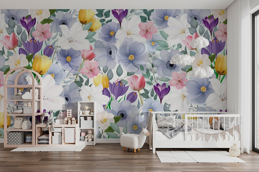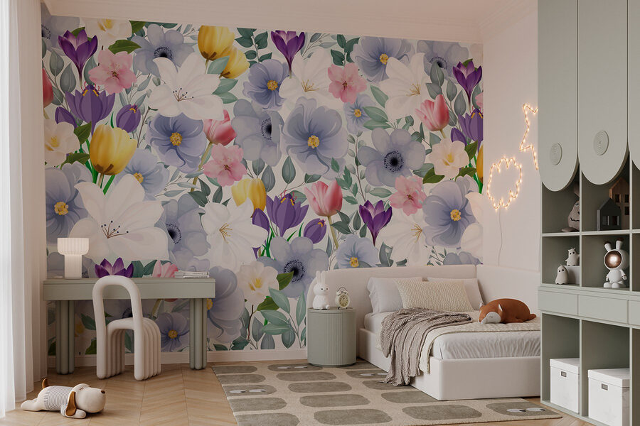 Φανταστείτε να μπαίνετε σε έναν κόσμο όπου τα λουλούδια ανθίζουν όλο το χρόνο. Αυτή η τοιχογραφία από πολύχρωμα άνθη και φυλλώδη χόρτα φέρνει μια έκρηξη χαράς σε κάθε δωμάτιο. Είναι σαν να έχετε ένα πάρτι στον κήπο χωρίς τις ενοχλητικές μέλισσες! Με απαλές πινελιές ακουαρέλας, κάθε λουλούδι αφηγείται τη δική του ιστορία, κάνοντάς σας να αισθάνεστε σχεδόν σαν να περιπλανιέστε σε ένα ιδιόρρυθμο λιβάδι.