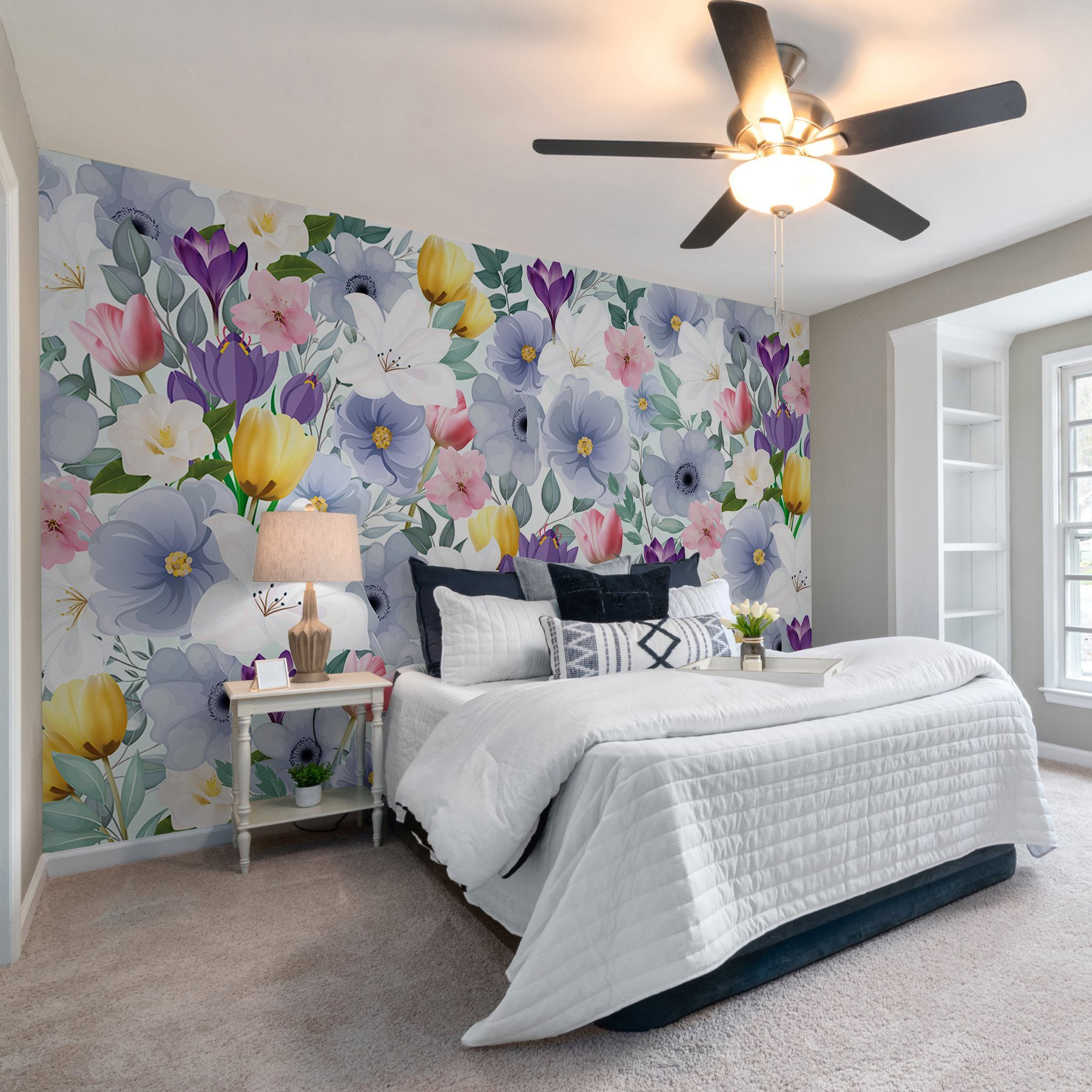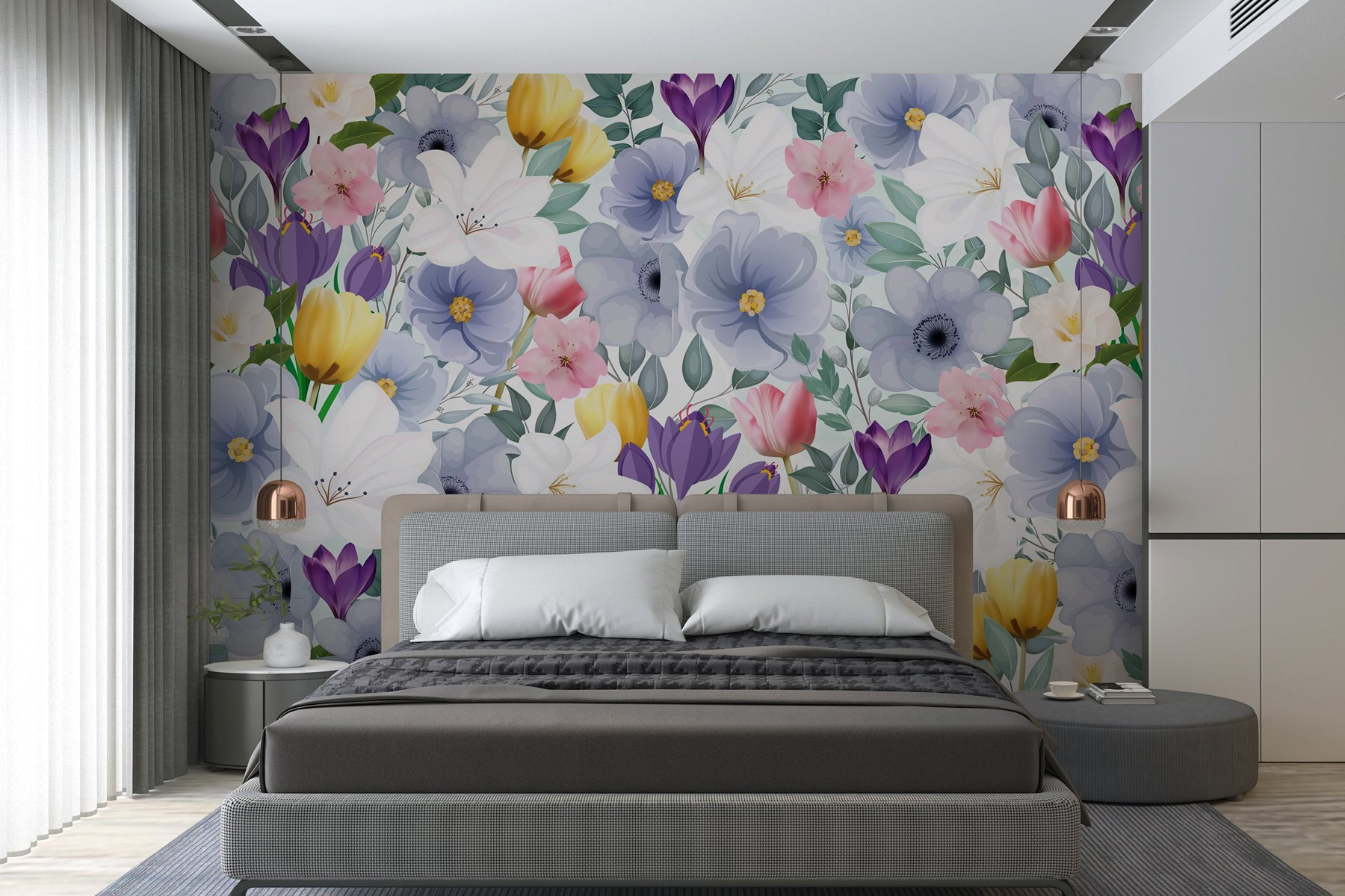 Είτε πρόκειται για ένα άνετο σαλόνι, μια ζωντανή κουζίνα ή ακόμη και ένα ονειρεμένο υπνοδωμάτιο, αυτό το σχέδιο προσκαλεί ζεστασιά και μια αίσθηση ηρεμίας. Φανταστείτε να κουλουριάζεστε με ένα καλό βιβλίο, περιτριγυρισμένοι από αυτά τα γοητευτικά λουλούδια, και απλά να αισθάνεστε ευτυχισμένοι. Είναι ένα μικρό κομμάτι της φύσης που μεταμορφώνει τους τοίχους σε ένα χαρούμενο σκηνικό, ιδανικό για όσους εκτιμούν κάτι ξεχωριστό στο χώρο τους.