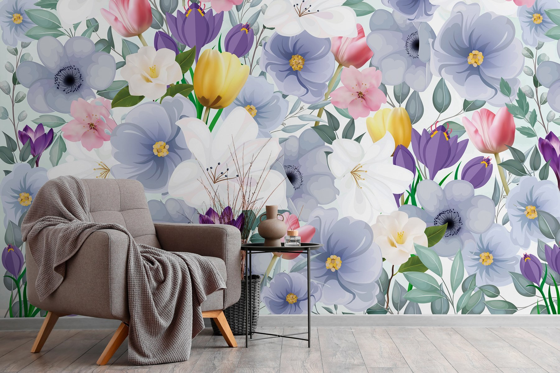 Φανταστείτε να μπαίνετε σε έναν κόσμο όπου τα λουλούδια ανθίζουν όλο το χρόνο. Αυτή η τοιχογραφία από πολύχρωμα άνθη και φυλλώδη χόρτα φέρνει μια έκρηξη χαράς σε κάθε δωμάτιο. Είναι σαν να έχετε ένα πάρτι στον κήπο χωρίς τις ενοχλητικές μέλισσες! Με απαλές πινελιές ακουαρέλας, κάθε λουλούδι αφηγείται τη δική του ιστορία, κάνοντάς σας να αισθάνεστε σχεδόν σαν να περιπλανιέστε σε ένα ιδιόρρυθμο λιβάδι.