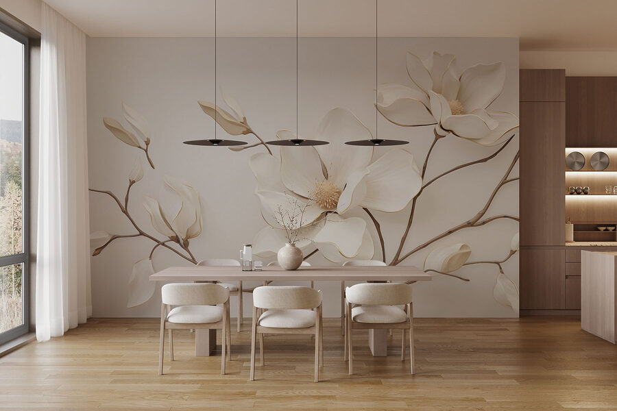 Η μετατροπή ενός άδειου τοίχου σε μια γαλήνια απόδραση είναι τόσο εύκολη όσο αυτή η εκπληκτική τοιχογραφία λευκών λουλουδιών. Φανταστείτε το – αυτά τα χαριτωμένα άνθη που απλώνονται προς τα έξω, σχεδόν ικετεύοντας να τα θαυμάσετε. Είναι σαν να προσκαλείτε τη φύση σε εσωτερικούς χώρους χωρίς την ενοχλητική γύρη! Καθώς το φως του ήλιου χορεύει πάνω στα απαλά ζωγραφισμένα πέταλα, το δωμάτιο μοιάζει πιο ελαφρύ, πιο ευάερο – είναι μια ανάσα φρέσκου αέρα. Ιδανική για ένα άνετο σαλόνι ή ένα ήσυχο υπνοδωμάτιο, αυτή η τοιχογραφία δεν είναι απλώς διακόσμηση, αλλά αφηγείται μια ιστορία κομψότητας και ηρεμίας. Φανταστείτε να πίνετε τσάι με φίλους, ενώ περιβάλλεστε από αυτή την ειρηνική ατμόσφαιρα. Η ομορφιά δεν έγκειται μόνο στο σχεδιασμό, αλλά στο πώς κάνει τον χώρο να αισθάνεται ζωντανός, αλλά και γαλήνιος. Οπότε, γιατί να περιμένετε; Αφήστε αυτό το κομμάτι να ανθίσει στο σπίτι σας!