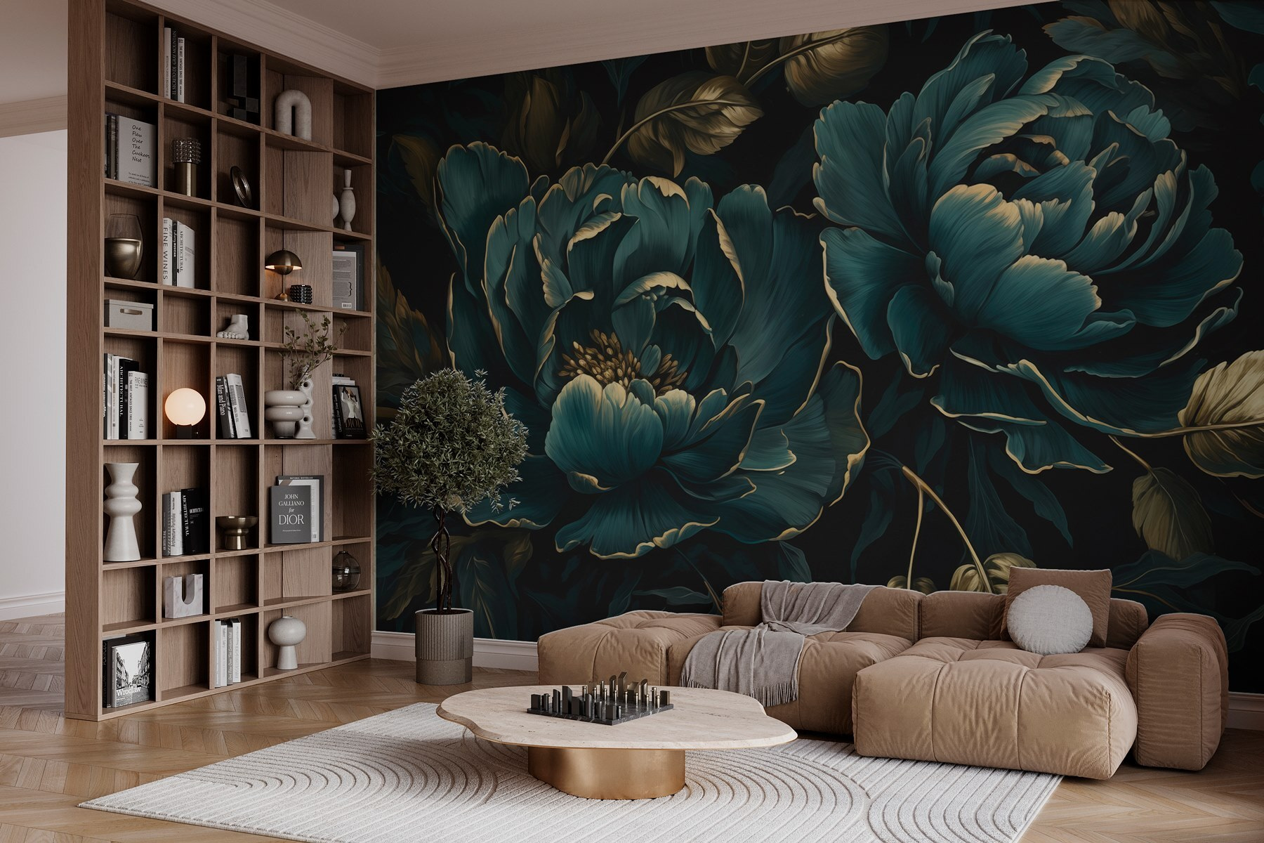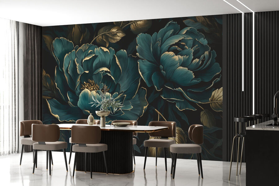 Μεταμορφώστε οποιοδήποτε δωμάτιο σε μια ζωντανή όαση με αυτή την εκπληκτική τοιχογραφία με όμορφα άνθη σε βαθιές αποχρώσεις. Φανταστείτε να μπαίνετε στο χώρο σας, όπου υπερμεγέθεις παιώνιες και πλούσιο φύλλωμα σας περιβάλλουν, προσκαλώντας ένα άγγιγμα του κήπου ακριβώς μέσα σας. Είναι σαν να έχετε μια προσωπική βοτανική απόδραση κάθε μέρα! Τα χρώματα είναι τολμηρά και πλούσια, προκαλώντας συναισθήματα ζεστασιάς και χαράς. Ιδανικό για εκείνον τον τοίχο που χρειάζεται λίγη αγάπη ή ίσως απλά για μια κουβέντα με έναν φίλο πάνω από τον καφέ. Ποιος δεν θα χαμογελούσε σε ένα δωμάτιο στολισμένο με τόσο δραματικά λουλούδια;