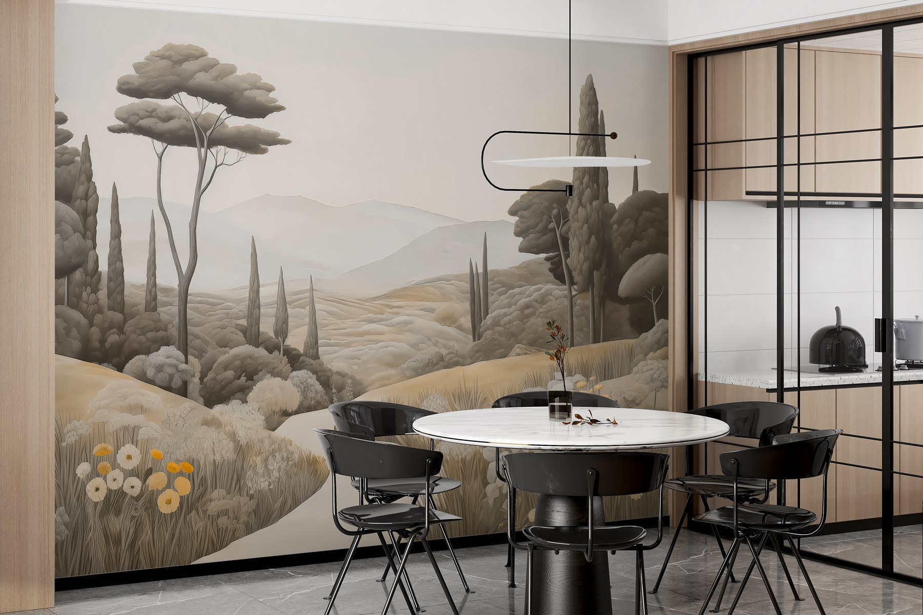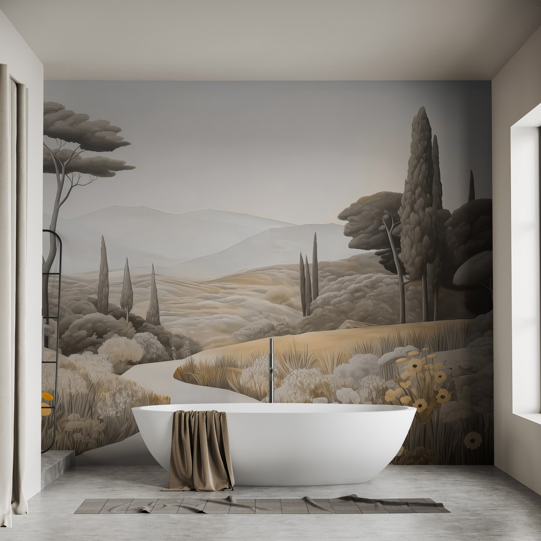 Μεταμορφώστε το χώρο σας με αυτή την εκπληκτική τοιχογραφία “Τοπίο με δρόμο και δέντρα”. Ζωντανεύει ένα γαλήνιο τοπίο, προσκαλώντας τη φύση στους εσωτερικούς χώρους χωρίς την υπαίθρια ακαταστασία. Φανταστείτε να πίνετε τον καφέ σας μια τεμπέλικη Κυριακή, ενώ ατενίζετε απαλούς λόφους και δέντρα που λικνίζονται – είναι σαν μια μίνι-διακοπές ακριβώς στον τοίχο σας. Ιδανική για αυτές τις ονειρικές στιγμές, αυτή η τοιχογραφία τυλίγει το δωμάτιό σας σε ζεστούς, γήινους τόνους και απαλές λεπτομέρειες που σας κάνουν να θέλετε να αναπνεύσετε βαθιά. Ψιθυρίζει χαλάρωση, θυμίζοντάς σας ειρηνικούς περιπάτους κάτω από έναν ανοιχτό ουρανό. Απλά φανταστείτε τις συζητήσεις που θα μπορούσε να προκαλέσει ή τις ήρεμες δονήσεις που φέρνει – τι γλυκιά πινελιά για κάθε γωνιά!