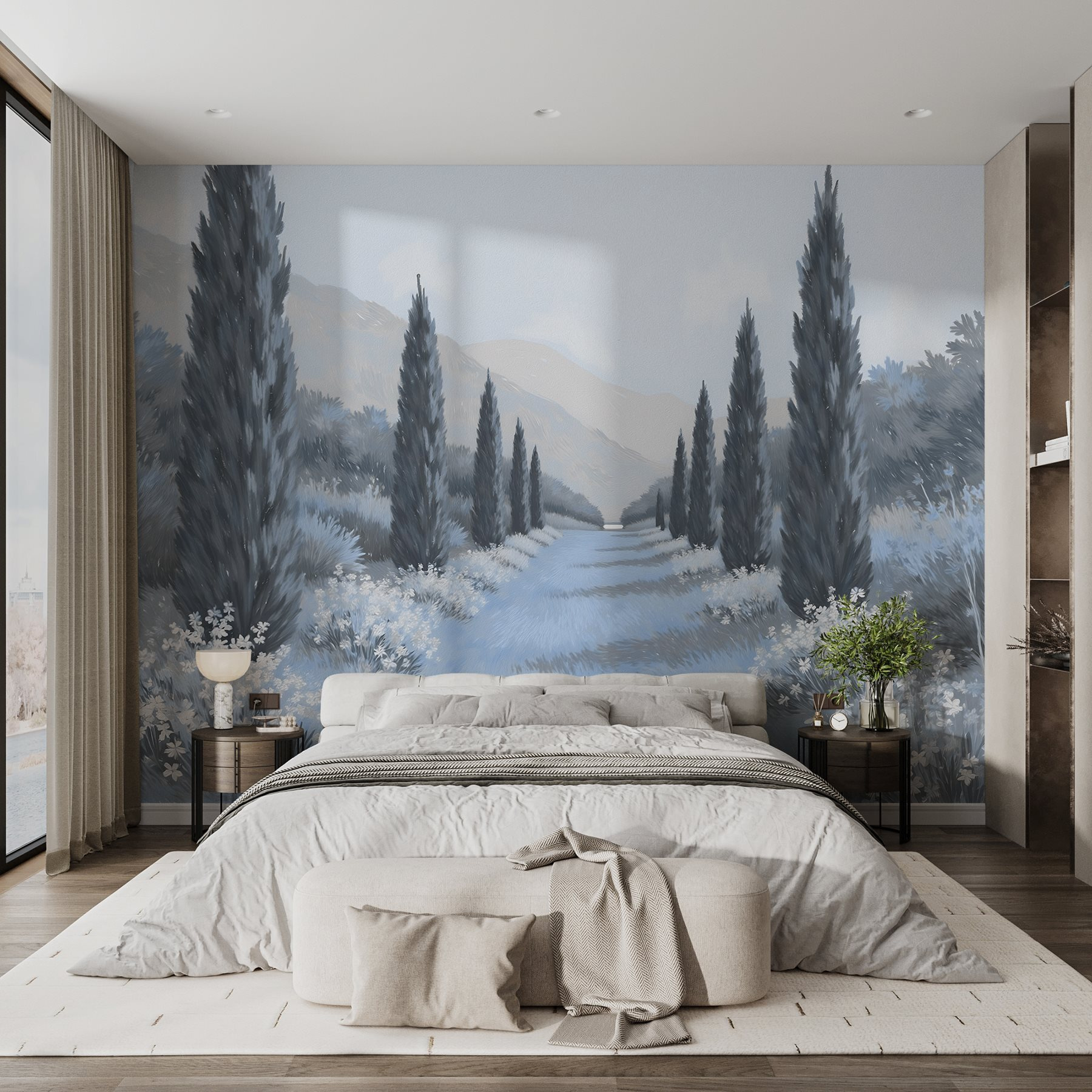 Αυτή η τοιχογραφία είναι μια ευγενική υπενθύμιση των ειρηνικών περιπάτων μέσα σε καταπράσινα τοπία, ιδανική για κάθε δωμάτιο που χρειάζεται ένα άγγιγμα ηρεμίας. Απλά φανταστείτε να φιλοξενείτε φίλους και αυτοί να σταματούν στη μέση της φράσης, να κοιτάζουν αυτό το έργο τέχνης και να αισθάνονται ξαφνικά χαλαροί. Είναι έναυσμα για συζήτηση, μια απόδραση και ένα μικρό κομμάτι της φύσης που μπορείτε να απολαμβάνετε καθημερινά.