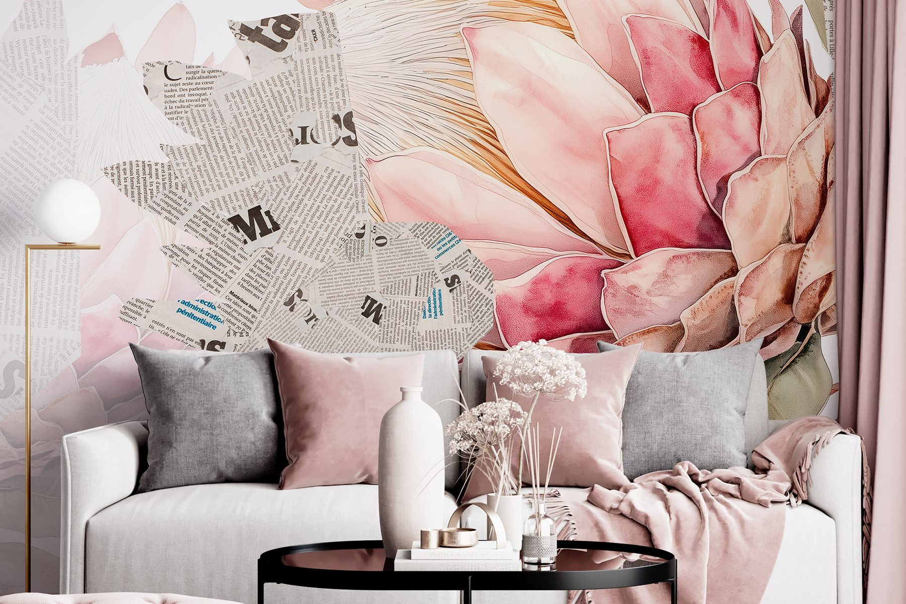 Μεταμορφώστε το χώρο σας με αυτή την ιδιόρρυθμη τοιχογραφία, έναν λεπτό χορό από ζωντανά λουλούδια και αποκόμματα εφημερίδων. Φανταστείτε να μπαίνετε σε ένα δωμάτιο όπου η φύση και η αστική ζωή συγκρούονται – κάθε πέταλο ξεχειλίζει από χρώμα, ενώ το χαρτί εφημερίδας ψιθυρίζει απαλά ιστορίες του κόσμου. Είναι σαν να έχετε έναν κήπο που δεν μαραίνεται ποτέ, ακριβώς στον τοίχο σας! Ιδανική για τη ζεστή γωνιά ανάγνωσης ή μια ζωντανή τραπεζαρία, αυτή η τοιχογραφία φέρνει μια πινελιά παιχνιδιού. Προσκαλεί την περιέργεια, προκαλώντας συζητήσεις καθώς οι επισκέπτες θαυμάζουν τη μοναδική γοητεία της. Ποιος ήξερε ότι η διακόσμηση θα μπορούσε να μοιάζει με μια ζεστή αγκαλιά; Βυθιστείτε σε αυτό το μείγμα ομορφιάς και δημιουργικότητας και αφήστε τους τοίχους σας να διηγηθούν μια ιστορία!