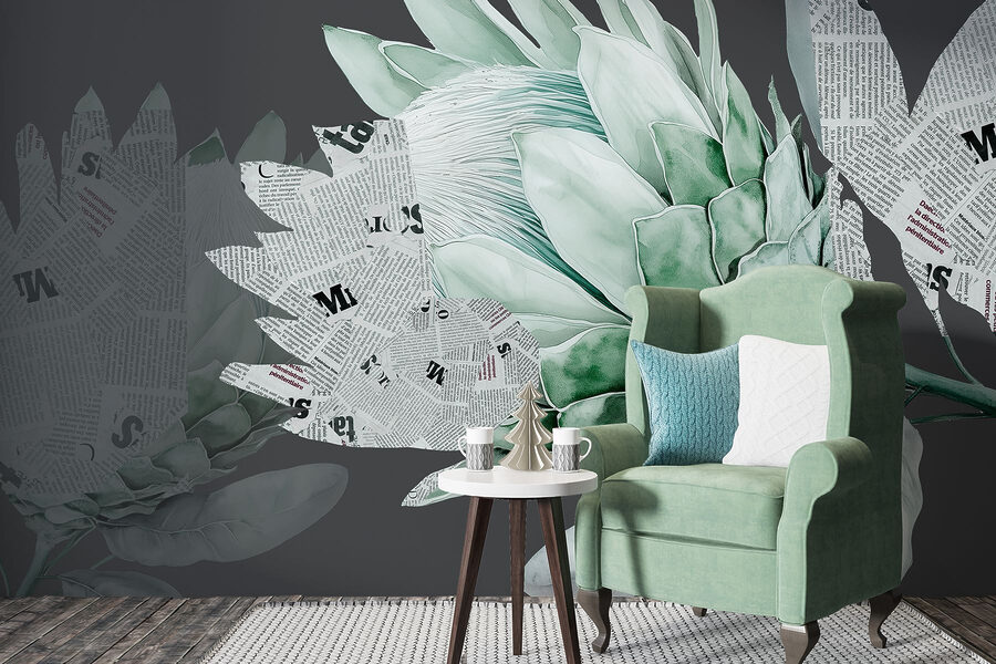 Μεταμορφώστε οποιονδήποτε βαρετό τοίχο σε ένα ζωντανό σημείο αναφοράς με αυτή τη μοναδική τοιχογραφία με μια αγκινάρα που διαπλέκεται με παιχνιδιάρικα αποσπάσματα εφημερίδας. Είναι σαν η αγκινάρα να δοκίμασε ένα νέο χόμπι – το διάβασμα! Αυτό το σχέδιο προσθέτει μια ιδιόμορφη πινελιά σε σαλόνια, κουζίνες ή ακόμα και σε εκείνη την περίεργη μικρή γωνιά που αγνοούσατε. Φανταστείτε τους φίλους σας να προσπαθούν να καταλάβουν τι λένε τα άρθρα, ενώ ο τοίχος σας θα βρίσκεται στο επίκεντρο. Κάθε φύλλο, με τις απαλές πράσινες αποχρώσεις του, προσκαλεί στην ηρεμία. Είναι ένα μείγμα φύσης και δημιουργικότητας – μια πραγματική πανδαισία για τα μάτια! Ιδανικό για όσους εκτιμούν τόσο το στυλ όσο και το καλό γέλιο.