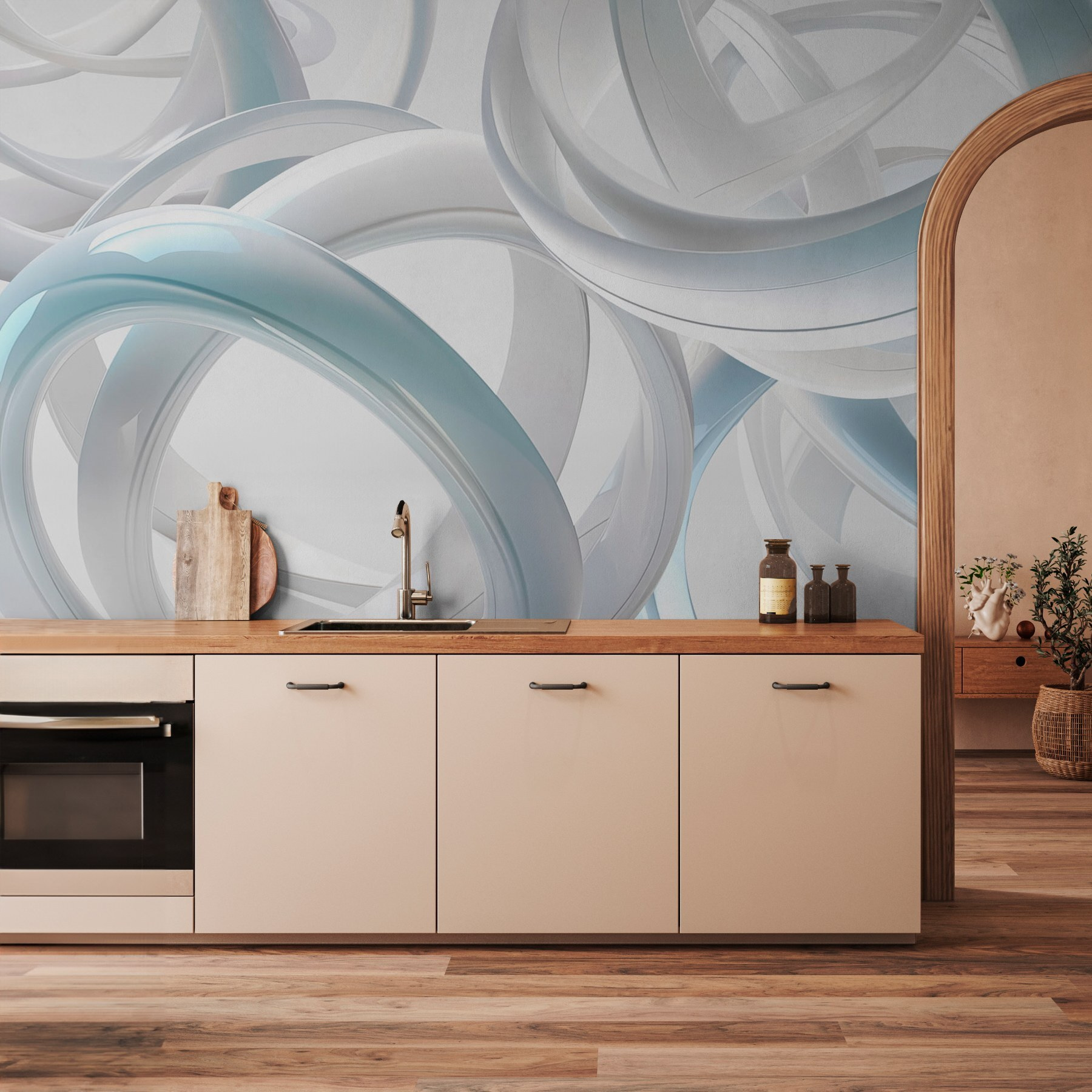 Μεταμορφώστε το χώρο σας με αυτή την εντυπωσιακή τοιχογραφία τοίχου με έναν παιχνιδιάρικο χορό από λευκά δαχτυλίδια. Είναι σαν να φέρνετε ένα κομμάτι μοντέρνας τέχνης στο σαλόνι σας! Φανταστείτε πώς θα τραβήξει το βλέμμα κάθε καλεσμένου – σαν ένα φιλικό σημείο που θα ξεκινήσει τη συζήτηση, λέγοντας διακριτικά: “Ναι, εδώ μένω”. Τα επικαλυπτόμενα σχήματα δημιουργούν μια αίσθηση βάθους, κάνοντας το δωμάτιο να μοιάζει πιο ευρύχωρο. Ιδανικό για μια άνετη γωνιά ανάγνωσης ή ακόμα και για ένα ζωντανό γραφείο. Επιπλέον, η ευάερη ατμόσφαιρα μπορεί να σας ανεβάσει τη διάθεση, κάνοντας κάθε μέρα να μοιάζει λίγο πιο ανάλαφρη. Ποιος ήξερε ότι μια τοιχογραφία μπορεί να βελτιώσει τη διάθεση; Απλά φανταστείτε το – οι απαλές, ρέουσες καμπύλες που σας προσκαλούν να ονειρευτείτε λίγο.