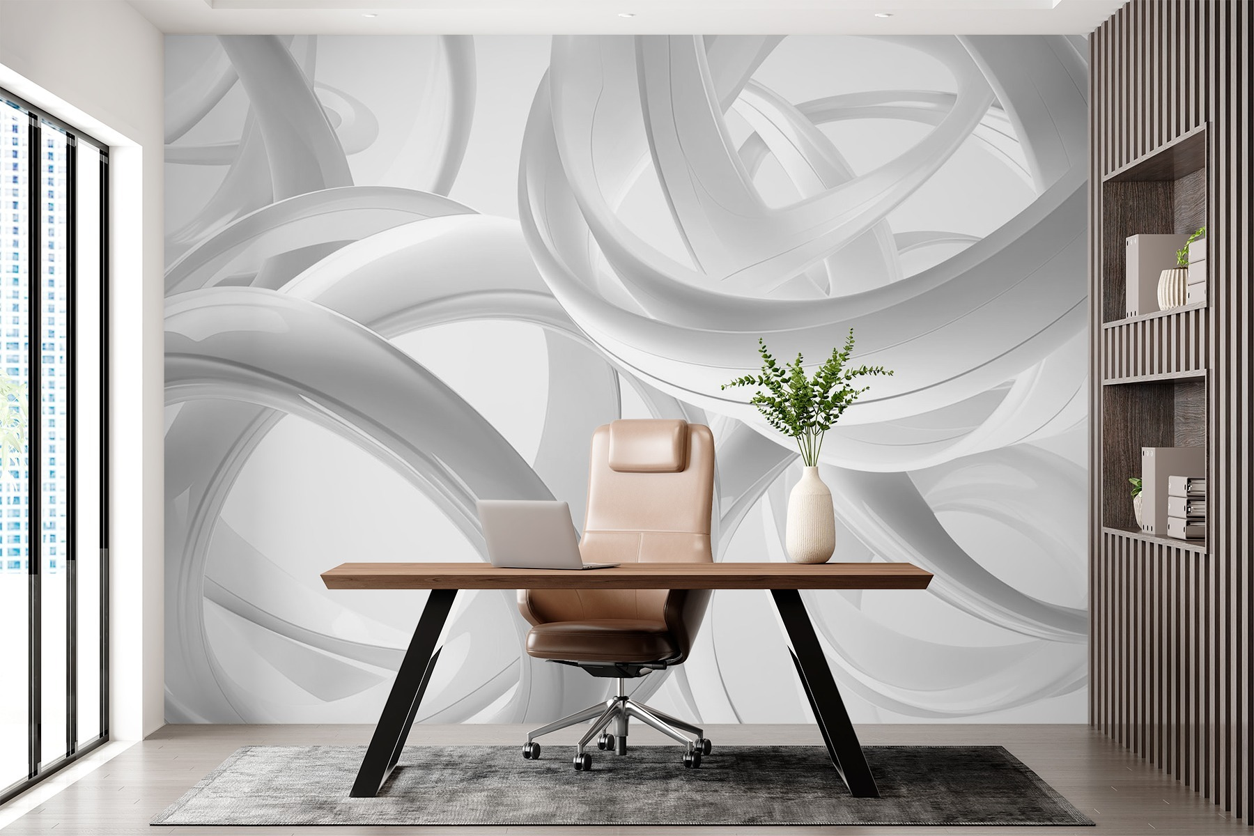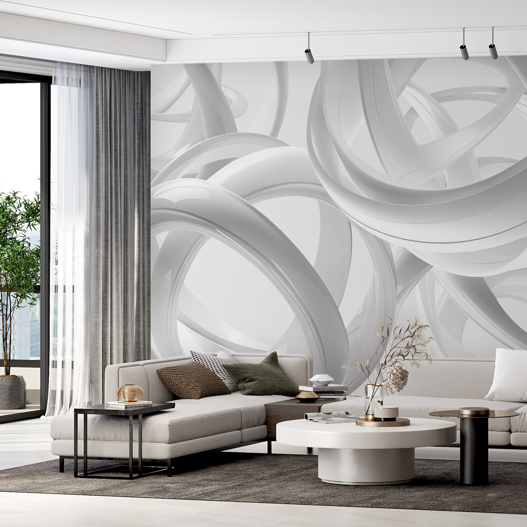 Μεταμορφώστε το χώρο σας με το μαγευτικό “Ταπετσαρίες Group of White Rings”. Αυτό το κομμάτι φέρνει έναν αέρα μοντέρνας απλότητας, δημιουργώντας μια αίσθηση ανοιχτότητας που είναι τόσο αναζωογονητική όσο ένα δροσερό αεράκι μια ηλιόλουστη μέρα. Φανταστείτε να μπαίνετε σε ένα δωμάτιο όπου αυτά τα στροβιλιζόμενα, αλληλοσυνδεόμενα δαχτυλίδια χορεύουν παιχνιδιάρικα στους τοίχους – είναι σαν να έχετε μια μίνι γκαλερί τέχνης στο σπίτι σας.