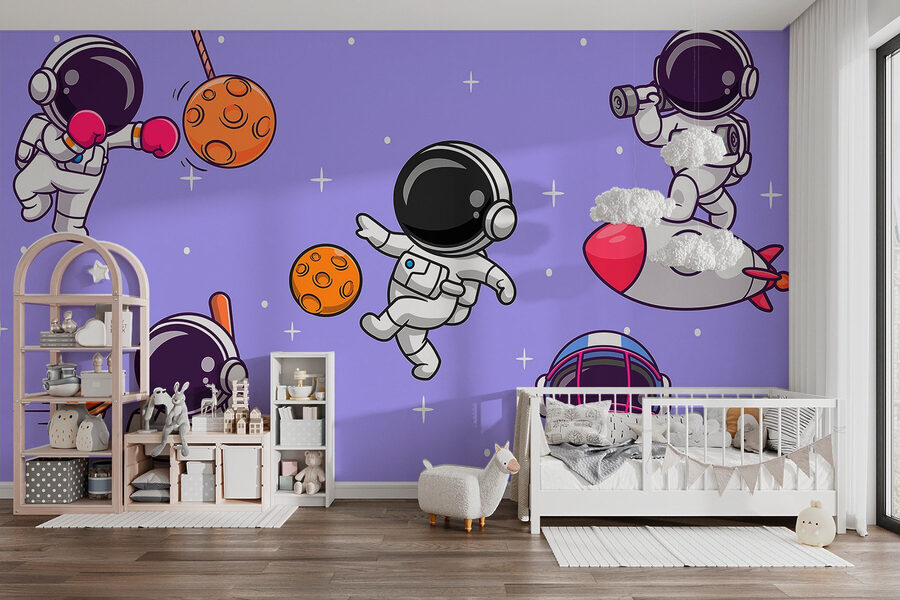 Φανταστείτε να μπαίνετε σε ένα δωμάτιο όπου οι αστροναύτες κάνουν ένα κοσμικό πάρτι – ακούγεται διασκεδαστικό, σωστά; Αυτή η τοιχογραφία αποτυπώνει αυτό το παιχνιδιάρικο πνεύμα με αστροναύτες κινουμένων σχεδίων που χοροπηδούν στο διάστημα, κάνοντας τα πάντα, από πυγμαχία με φεγγαρόπετρες μέχρι ζουμ με πυραύλους. Είναι σαν μια ζωντανή ιστορία που εκτυλίσσεται στον τοίχο σας, ιδανική για παιδιά ή για νέους με καρδιά. Φανταστείτε αυτές τις σοβαρές στιγμές της καθημερινότητας να φωτίζονται καθώς ρίχνετε μια ματιά σε αυτούς τους ιδιόρρυθμους εξερευνητές του διαστήματος, που σας υπενθυμίζουν να αγκαλιάζετε τη χαρά και την περιπέτεια. Ποιος δεν θα ήθελε ένα κομμάτι του σύμπαντος πασπαλισμένο με ευτυχία; Μεταμορφώστε έναν απλό χώρο σε μια ευφάνταστη απόδραση όπου τα όνειρα πετάνε!