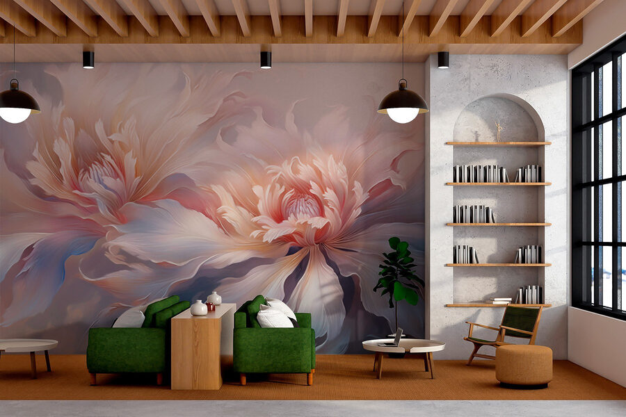 Φανταστείτε να μπαίνετε σε έναν γαλήνιο κόσμο γεμάτο με ντελικάτα άνθη, όπου οι απαλές αποχρώσεις φλερτάρουν με τους τοίχους. Αυτή η τοιχογραφία φέρνει έναν απαλό ψίθυρο της φύσης στους εσωτερικούς χώρους. Κάθε πέταλο μοιάζει να χορεύει, προσκαλώντας ήρεμες δονήσεις που μπορούν να φωτίσουν ακόμα και τις πιο βαρετές γωνίες.