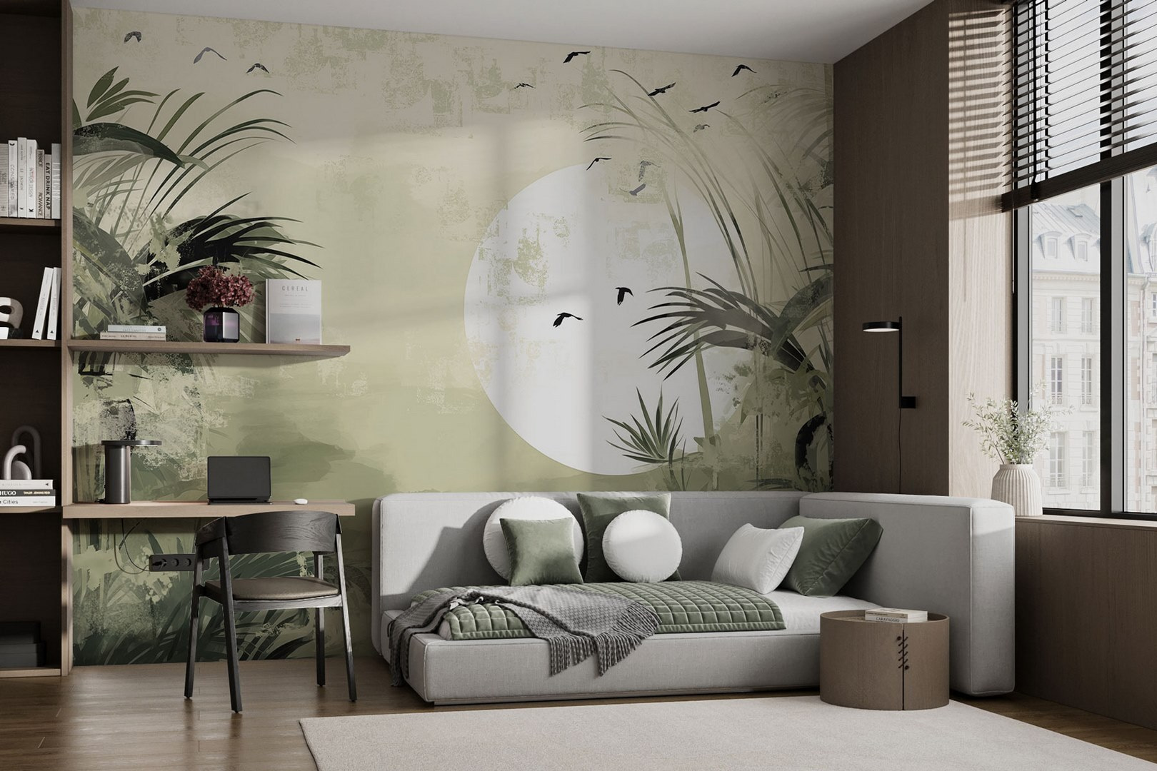 Μεταμορφώστε οποιοδήποτε δωμάτιο σε ένα γαλήνιο καταφύγιο με αυτή την τοιχογραφία τροπικού δάσους – είναι σαν να φέρνετε ένα κομμάτι της ζούγκλας στους εσωτερικούς χώρους, χωρίς τα έντομα. Φανταστείτε να πίνετε τον πρωινό σας καφέ καθώς κοιτάζετε την πλούσια βλάστηση και ένα ονειρικό, υπερμεγέθες φεγγάρι. Αυτή η τοιχογραφία δεν διακοσμεί απλώς, αλλά προκαλεί μια αίσθηση ηρεμίας, ιδανική για να χαλαρώσετε μετά από μια κουραστική μέρα. Οι φίλοι σας θα περπατήσουν μέσα και θα νιώσουν σαν να έχουν μπει σε μια απόδραση από το τροπικό δάσος. Είναι το είδος του σκηνικού που προσκαλεί σε ονειροπολήσεις και πυροδοτεί συζητήσεις. Ποιος θα μπορούσε να φανταστεί ότι ένας τοίχος μπορεί να μεταφέρει κάποιον στον παράδεισο;