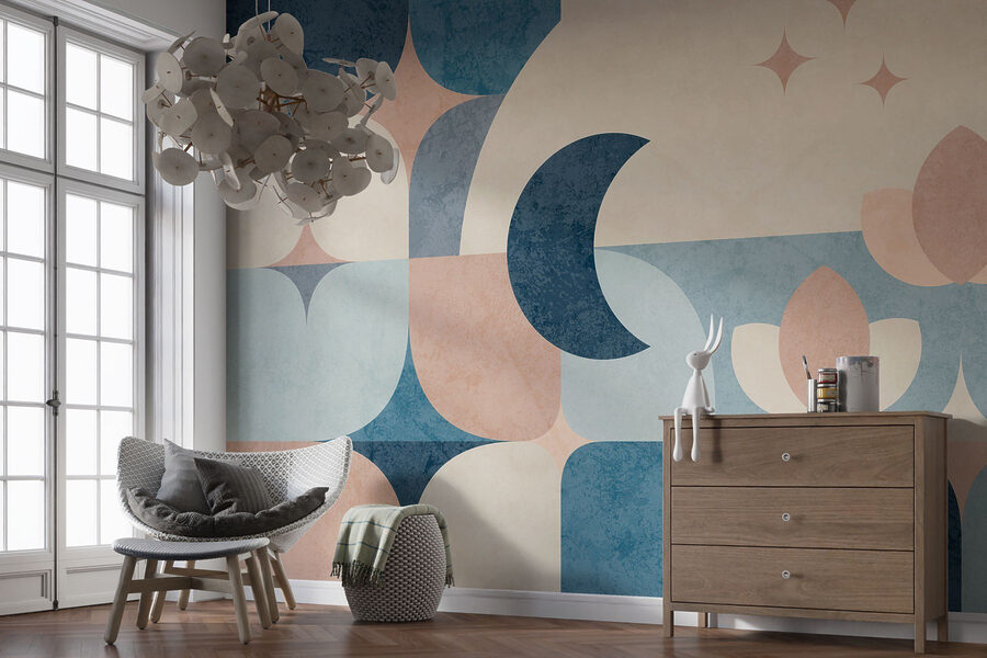 Μεταμορφώστε οποιονδήποτε τοίχο σε σημείο αναφοράς με αυτή την εκπληκτική μπλε και ροζ γεωμετρική τοιχογραφία. Είναι σαν μια ζεστή αγκαλιά για το δωμάτιό σας – τολμηρή αλλά καταπραϋντική, με σχήματα που χορεύουν στην επιφάνεια. Φανταστείτε να πίνετε τον καφέ σας και να χάνεστε στην ήρεμη ατμόσφαιρά της. Κάθε καμπύλη και γωνία προσκαλεί το μάτι να περιπλανηθεί, πυροδοτώντας ιδέες για τις δημιουργικές ψυχές εκεί έξω. Ιδανικό για ένα σαλόνι, ένα γραφείο στο σπίτι ή ακόμη και για ένα παιχνιδιάρικο παιδικό δωμάτιο, αυτό το σχέδιο ψιθυρίζει ζεστασιά, ενώ ταυτόχρονα κάνει μια δήλωση. Προσθέστε λίγη γοητεία και δείτε τον χώρο σας να ζωντανεύει. Είναι τέχνη τοίχου που μοιάζει με όνειρο ημέρας.