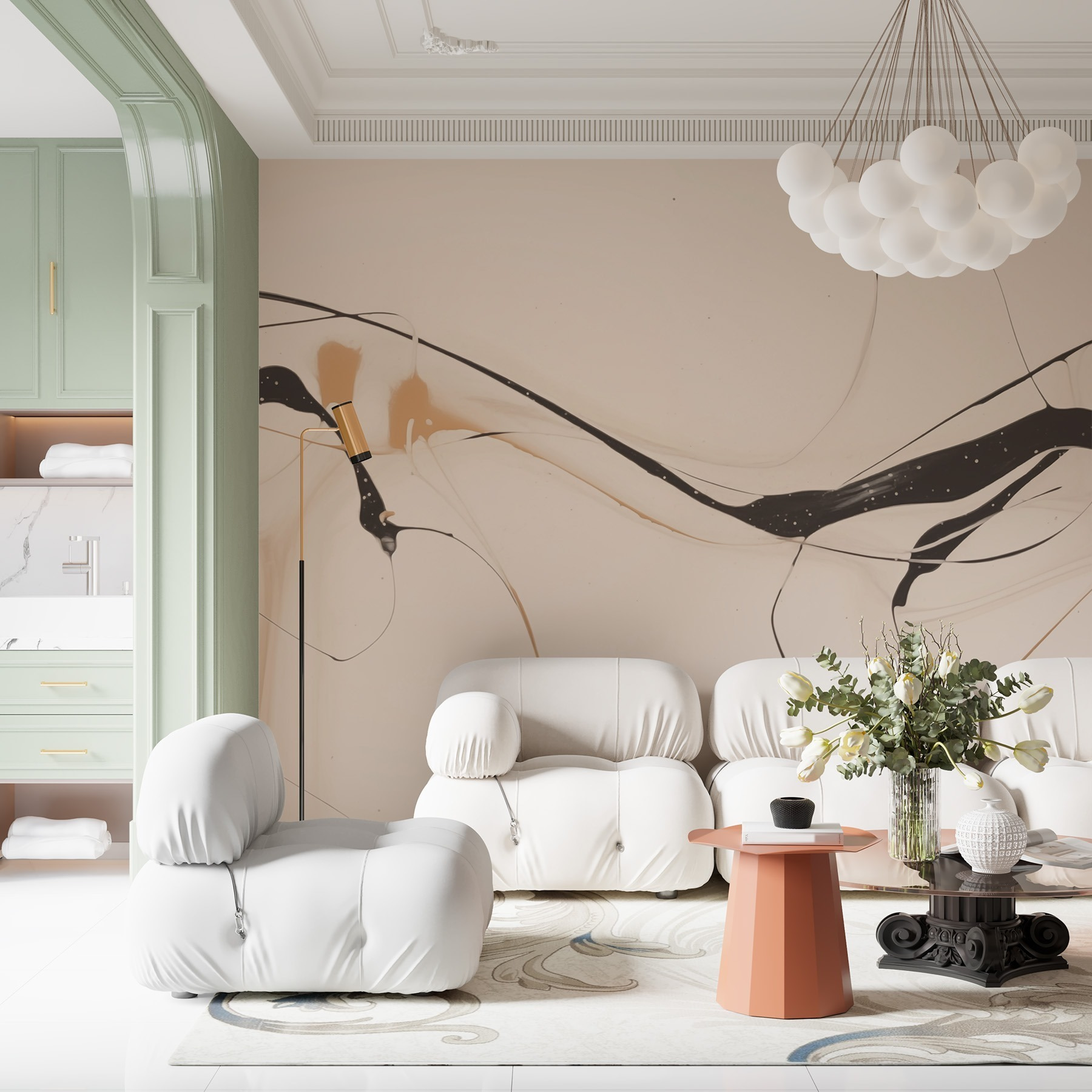 Μεταμορφώστε οποιονδήποτε τοίχο σε έναν εντυπωσιακό καμβά με αυτή τη μαγευτική τοιχογραφία. Το τολμηρό μείγμα μαύρου και μαύρου χρώματος σε ανοιχτόχρωμο φόντο δημιουργεί έναν παιχνιδιάρικο χορό χρωμάτων που μπορεί να πυροδοτήσει τη δημιουργικότητα και τη συζήτηση. Φανταστείτε να πίνετε καφέ, ατενίζοντας αυτές τις λεπτές γραμμές που καμπυλώνουν και συστρέφονται – είναι σαν να παρακολουθείτε ένα γαλήνιο ποτάμι να κυλάει. Ιδανικό για σαλόνια, γραφεία στο σπίτι ή ακόμη και για φιλόξενες γωνιές, προσθέτει μια πινελιά σύγχρονου αέρα. Είναι τέχνη, είναι μια δήλωση και ίσως εμπνεύσει τους επισκέπτες να μείνουν λίγο περισσότερο. Ποιος δεν θα ήθελε ένα κομμάτι σαν αυτό να φωτίζει τη μέρα του;