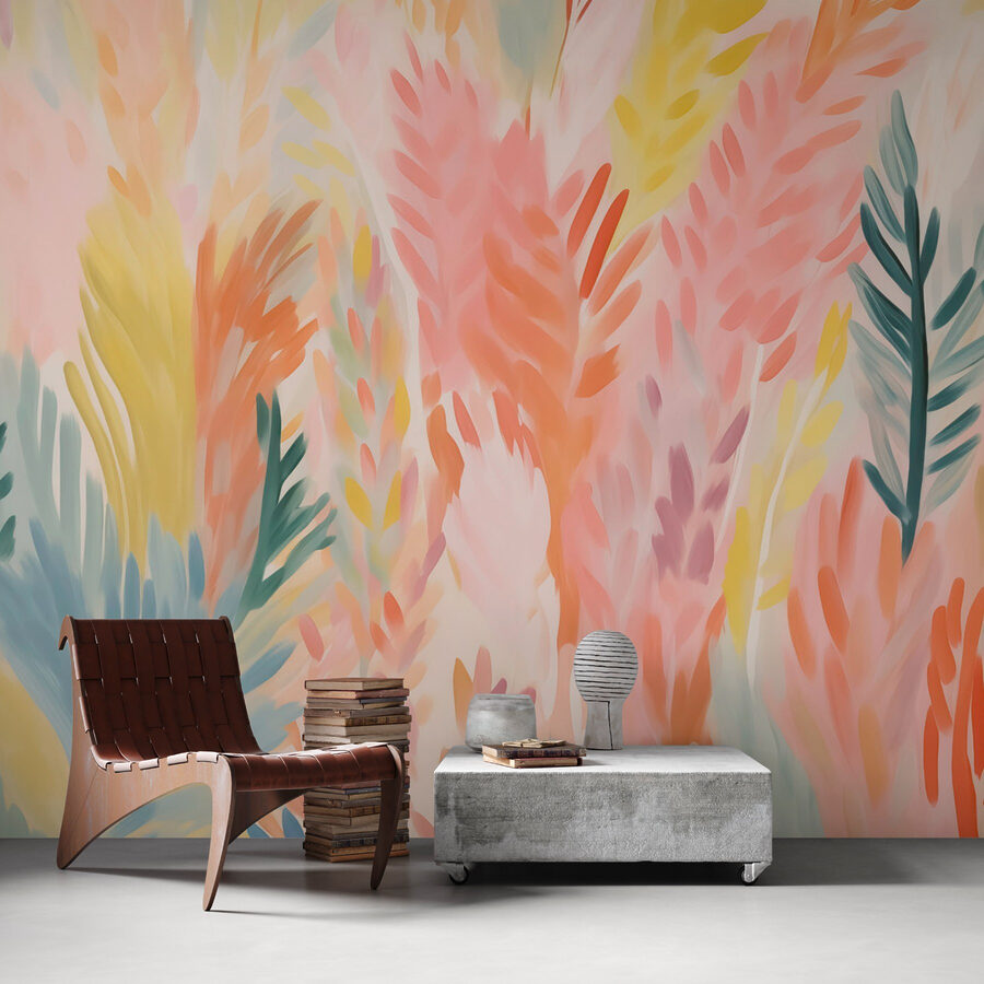 Μεταμορφώστε έναν θαμπό τοίχο σε μια ζωντανή ζούγκλα χρωμάτων με αυτή τη μαγευτική τοιχογραφία με πολύχρωμα φύλλα σε απαλό λευκό φόντο. Φανταστείτε να μπαίνετε σε έναν ηλιόλουστο κήπο κάθε φορά που μπαίνετε στο δωμάτιο. Οι παιχνιδιάρικες αποχρώσεις του ροζ, του πράσινου και του κίτρινου φέρνουν μια άμεση ανάταση, σαν μια καλή διάθεση πασπαλισμένη με λίγη μαγεία. Ιδανικό για κάθε χώρο, αυτό το σχέδιο κεντρίζει χαρά και φαντασία – ποιος ξέρει, μπορεί να εμπνεύσει ακόμη και ένα ιδιόρρυθμο πάρτι τσαγιού! Φέρτε την ύπαιθρο μέσα και αφήστε την ομορφιά της φύσης να δώσει ζωή στο σπίτι σας. Εξάλλου, η ζωή είναι πολύ μικρή για βαρετούς τοίχους!
