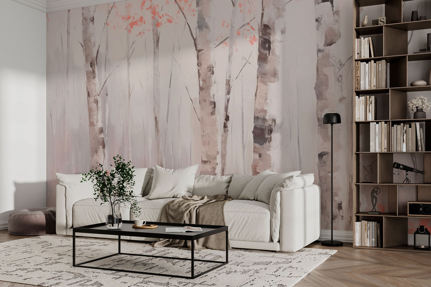 Μεταμορφώστε το χώρο σας με αυτή τη γοητευτική τοιχογραφία με δέντρα ντυμένα με απαλά ροζ φύλλα. Φανταστείτε να μπαίνετε κάθε μέρα σε ένα γαλήνιο δάσος, όπου το απαλό λίκνισμα των σημύδων ψιθυρίζει γαλήνη. Οι λεπτές αποχρώσεις δημιουργούν μια αέρινη ατμόσφαιρα, ιδανική για να φωτίσει κάθε δωμάτιο. Είτε πρόκειται για μια ζεστή γωνιά είτε για έναν κεντρικό τοίχο, αυτή η τοιχογραφία σας προσκαλεί να χαθείτε στην αγκαλιά της φύσης, ακόμη και αν απλά πίνετε καφέ στο σπίτι. Επιπλέον, σε ποιον δεν αρέσει μια πινελιά χρώματος που μοιάζει τόσο αναζωογονητική όσο και ηρεμιστική; Είναι σαν να φέρνετε το φθινόπωρο στο σπίτι, χωρίς την ψύχρα!