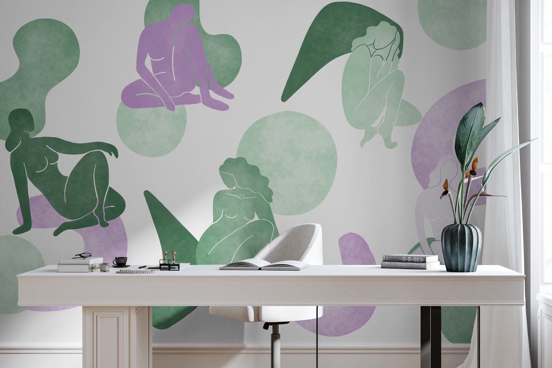 Οι απαλές αποχρώσεις του πράσινου και της λεβάντας συνδυάζονται αβίαστα, δημιουργώντας ένα καταπραϋντικό σκηνικό που συμπληρώνει διάφορα στυλ διακόσμησης. Είναι ιδανικό για μια ζεστή γωνιά ανάγνωσης ή ένα καλλιτεχνικό σαλόνι! Απλά φανταστείτε πώς θα πυροδοτήσει συζητήσεις όταν περάσουν οι καλεσμένοι. Είναι κάτι περισσότερο από μια απλή ταπετσαρία- είναι σαν να κρεμάτε ένα έργο τέχνης που μιλάει στην καρδιά. Προσθέστε αυτή την τοιχογραφία και, στη συνέχεια, παρακολουθήστε τον χώρο σας να μεταμορφώνεται σε ένα καταφύγιο στυλ και άνεσης.