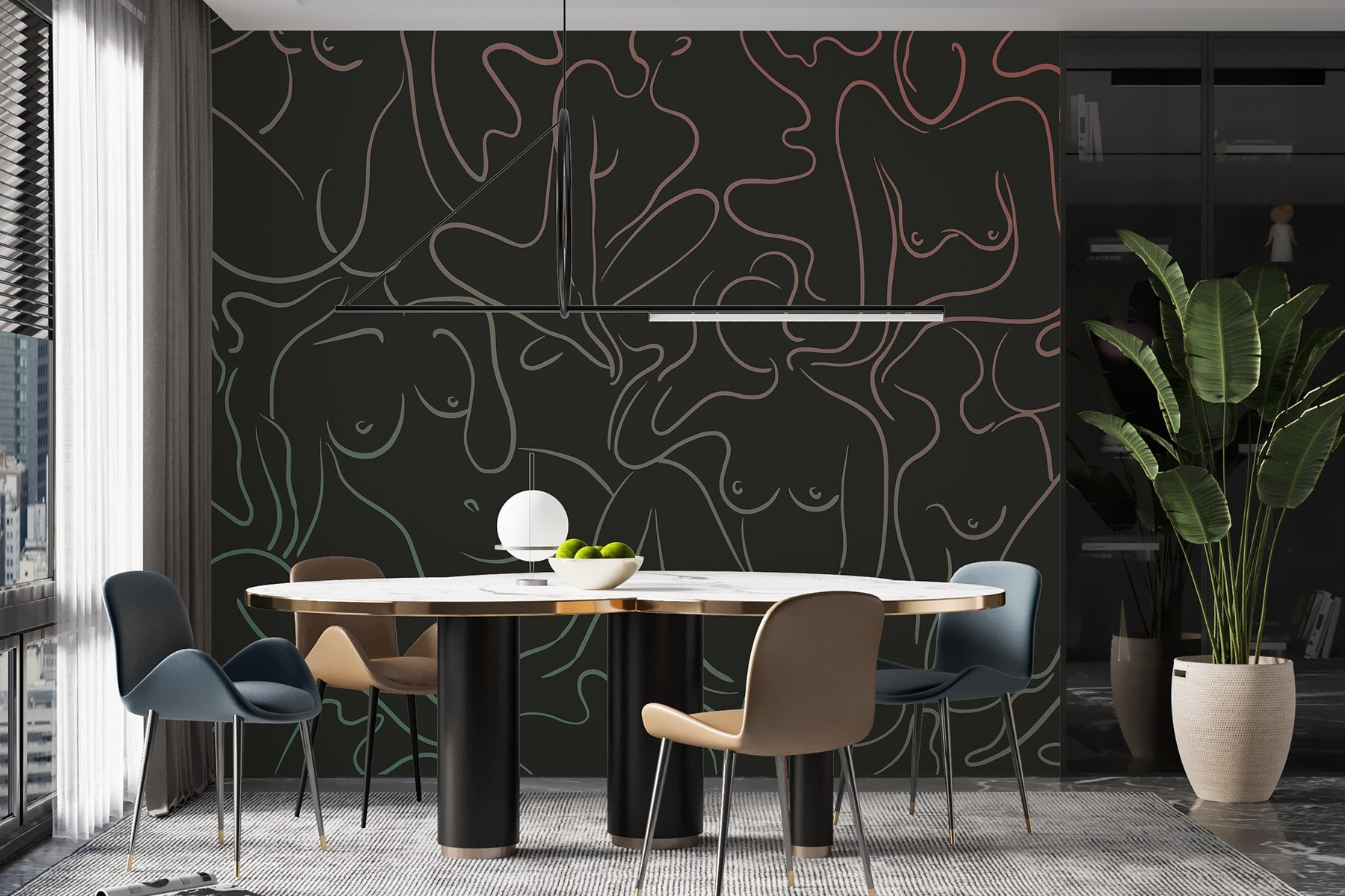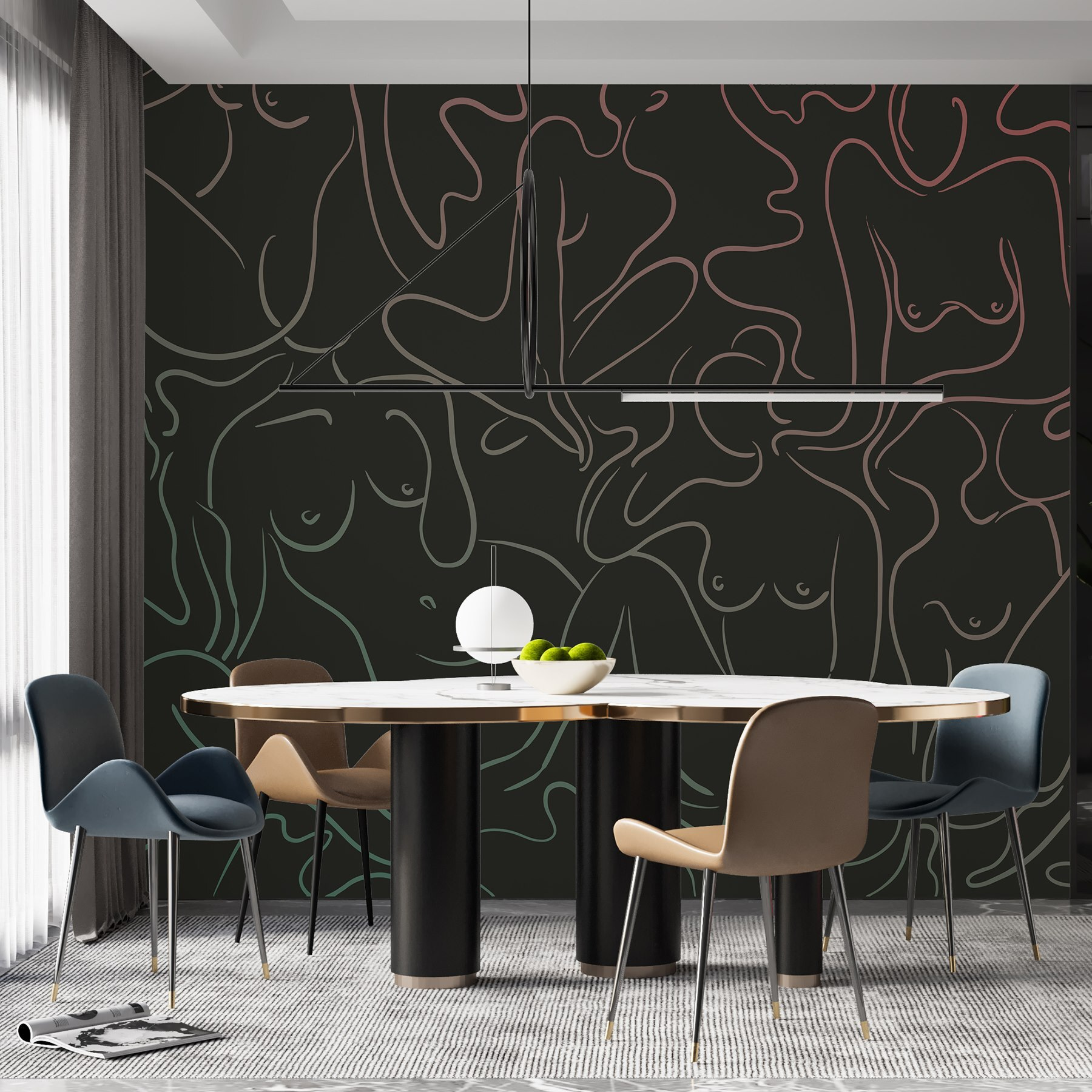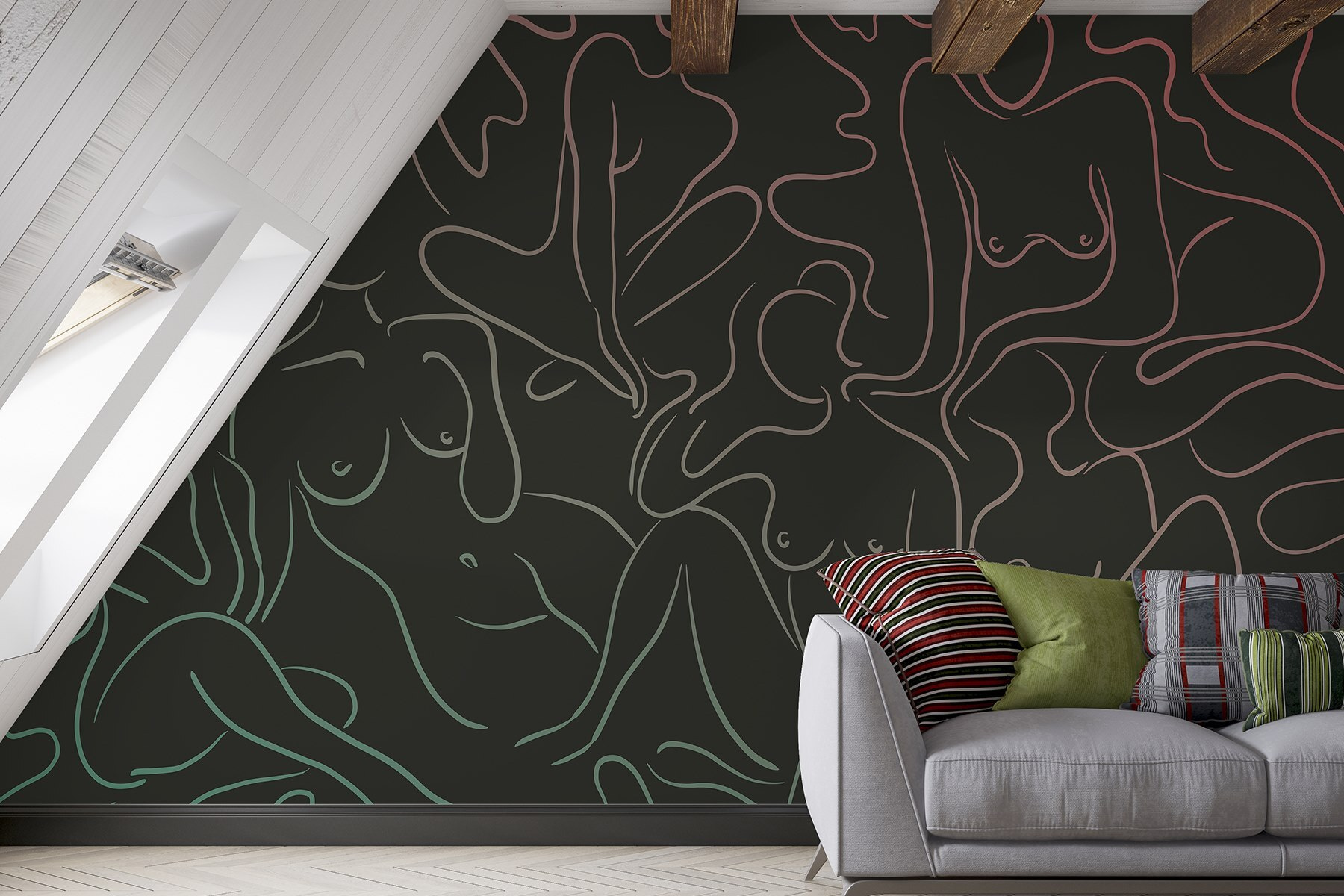 Μεταμορφώστε οποιοδήποτε δωμάτιο με αυτή την εκπληκτική τοιχογραφία τοίχου με μια ομάδα γυναικείων σωμάτων, που απεικονίζονται κομψά με ρευστές γραμμές. Είναι σαν μια καλλιτεχνική αγκαλιά για το χώρο σας, προσκαλώντας ζεστασιά και συζήτηση. Φανταστείτε τους φίλους σας να περπατούν μέσα, να σταματούν για να το θαυμάσουν, ίσως ακόμη και να μοιραστούν τις σκέψεις τους για τη στάση της κάθε φιγούρας. Τα παιχνιδιάρικα σχήματα και τα απαλά χρώματα δημιουργούν μια χαλαρωτική ατμόσφαιρα, ιδανική για μια ζεστή γωνιά ανάγνωσης ή ένα κομψό σαλόνι. Δεν είναι απλώς διακόσμηση- είναι μια ευκαιρία να γιορτάσετε την ομορφιά και τη φόρμα με μοναδικό τρόπο, ενώ παράλληλα πυροδοτείτε χαρά και έμπνευση κάθε μέρα. Οι τοίχοι σας αξίζουν λίγη προσωπικότητα!