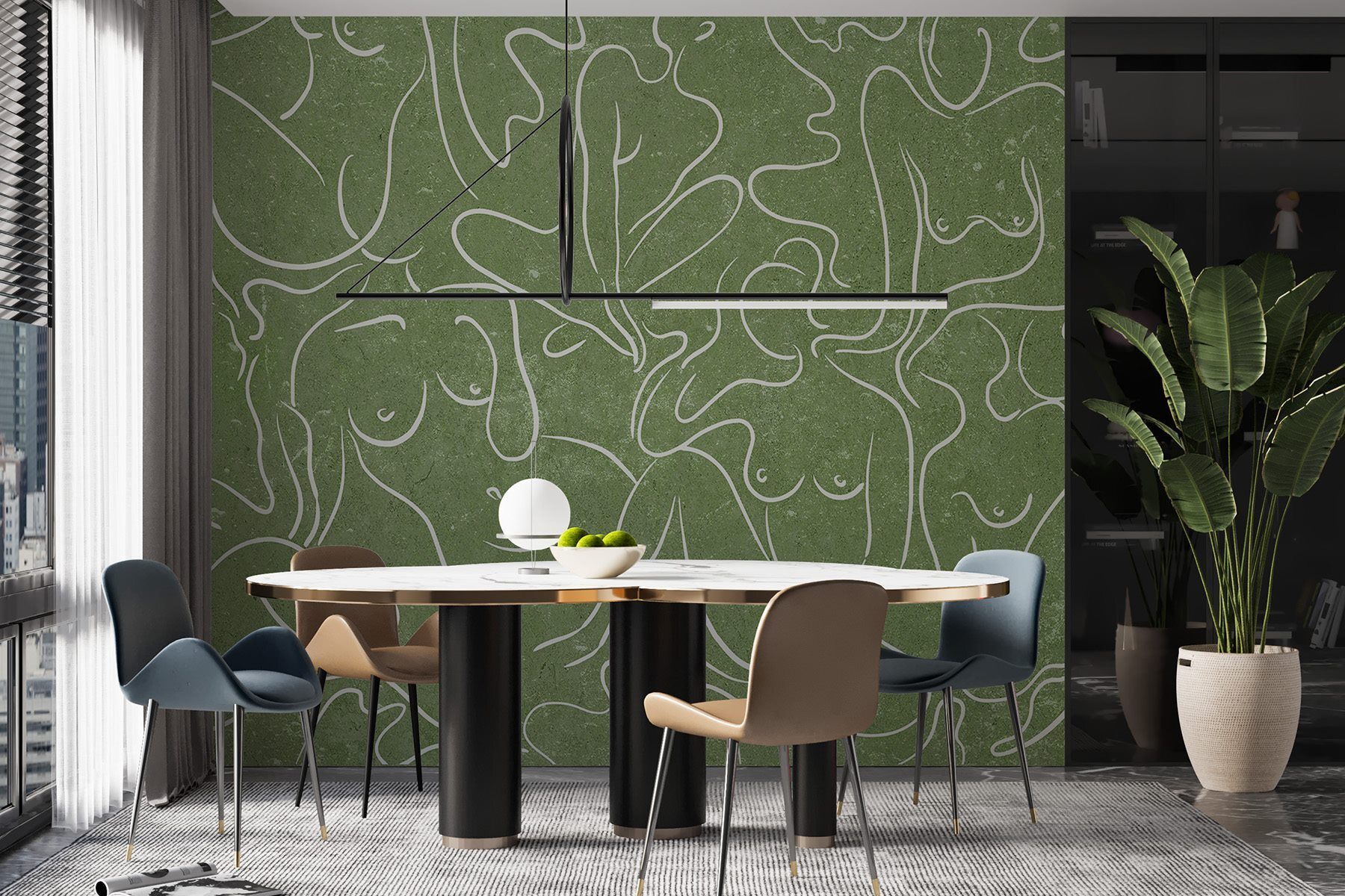 Παρουσιάζουμε μια τοιχογραφία που είναι σαν μια ζεστή αγκαλιά για κάθε χώρο – φανταστείτε μια ζεστή γωνιά που μεταμορφώνεται από χαριτωμένα περιγράμματα γυναικών, που στροβιλίζονται απαλά σε ένα απαλό πράσινο φόντο. Αυτό δεν είναι απλώς διακόσμηση, είναι ένα ενισχυτικό της διάθεσης! Φανταστείτε να πίνετε τσάι, χαμένοι στη σκέψη, καθώς αυτές οι ρέουσες φιγούρες εμπνέουν τη δημιουργικότητα και τη σύνδεση. Οι φίλοι θα συζητούν για την ομορφιά και την απλότητα όλων αυτών, ενώ εσείς θα απολαμβάνετε κρυφά τα κομπλιμέντα. Ιδανικό για ένα σαλόνι ή ένα γαλήνιο υπνοδωμάτιο, σας τραβάει με την ευγενική γοητεία και την καλλιτεχνική του ατμόσφαιρα. Ποιος ήξερε ότι η τέχνη τοίχου θα μπορούσε να είναι τόσο φιλόξενη;