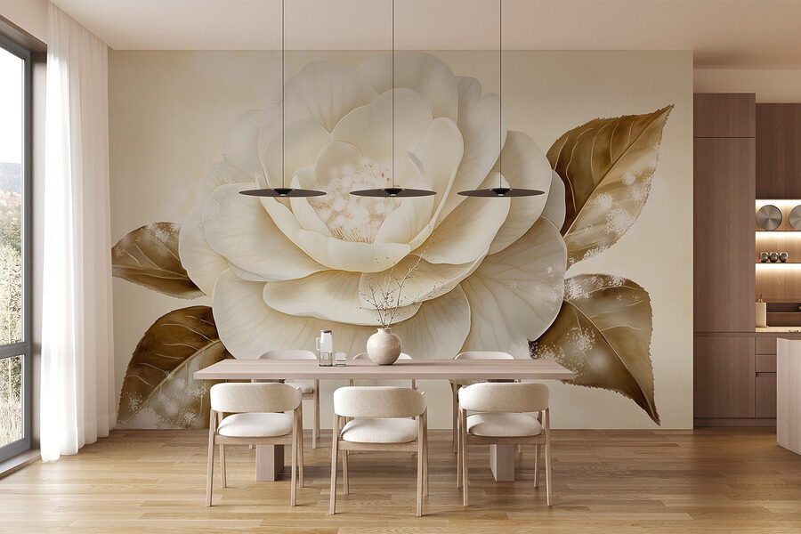 Μεταμορφώστε το χώρο σας με αυτή την εκπληκτική τοιχογραφία τοίχου με ένα όμορφο λευκό λουλούδι σε συνδυασμό με ζεστά καφέ φύλλα. Φανταστείτε να μπαίνετε σε ένα δωμάτιο όπου αυτό το έργο τέχνης σας υποδέχεται, γεμίζοντάς το με μια αίσθηση ηρεμίας και γοητείας της φύσης. Οι απαλές αποχρώσεις και οι λεπτές λεπτομέρειες τραβούν το βλέμμα, καθιστώντας το ιδανικό για ένα άνετο σαλόνι ή ένα γαλήνιο υπνοδωμάτιο. Οι επισκέπτες μπορεί να σταματήσουν να θαυμάζουν την ομορφιά του, ίσως και να εμπνευστούν για να χαλαρώσουν με ένα καλό βιβλίο κοντά. Είναι σαν να φέρνετε λίγο από την ύπαιθρο μέσα στο σπίτι, χωρίς τη γύρη. Μια απλή αλλαγή που προκαλεί χαρά, δεν νομίζετε;