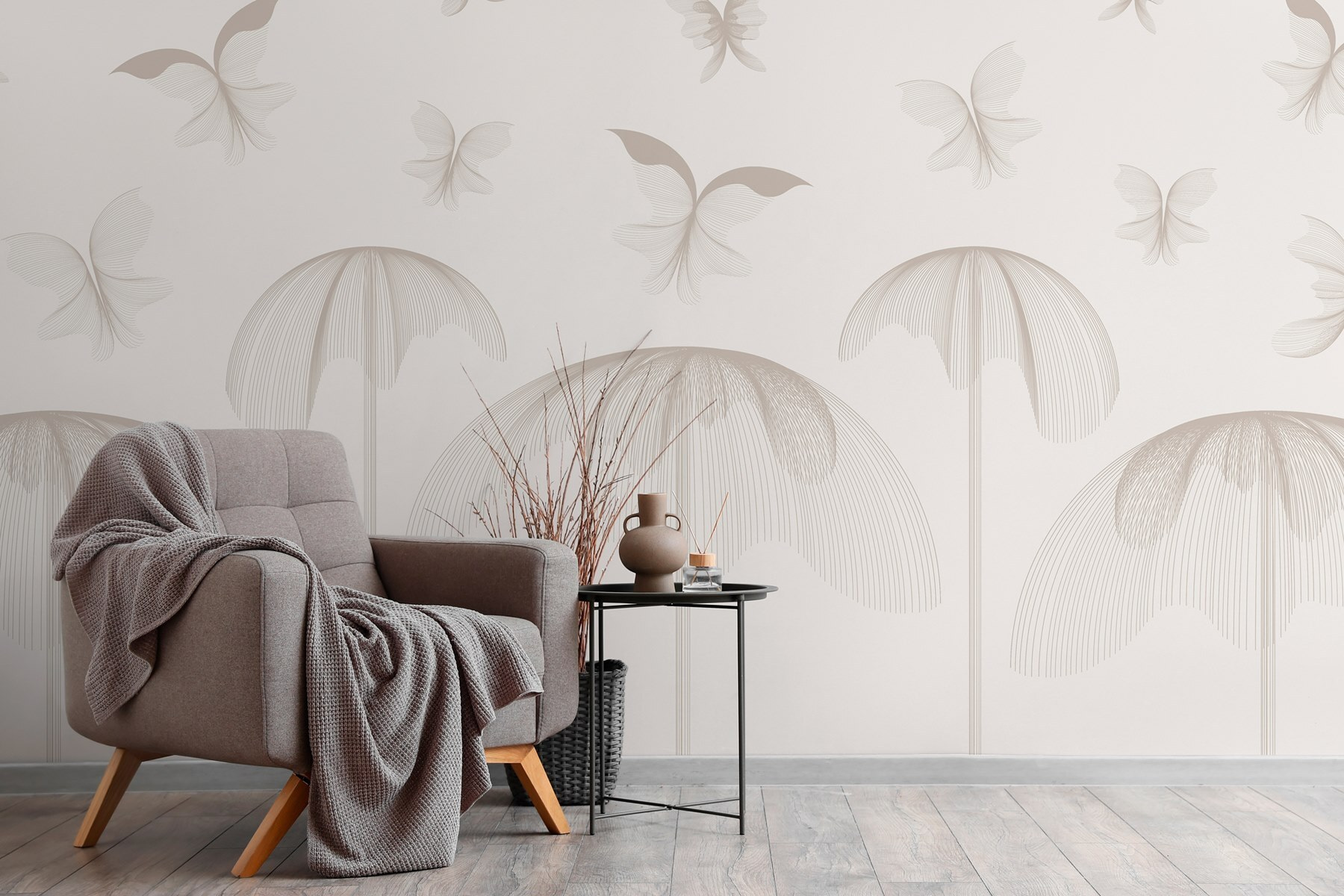 Φέρτε μια ανάσα φρέσκου αέρα στο χώρο σας με αυτή τη μαγευτική τοιχογραφία τοίχου με πεταλούδες που φτερουγίζουν ανάμεσα σε λεπτά λουλούδια. Φανταστείτε να μπαίνετε σε έναν γαλήνιο κήπο κάθε φορά που μπαίνετε στο δωμάτιο. Τα σχέδια που στροβιλίζονται απαλά και οι υποτονικές αποχρώσεις δημιουργούν ένα γαλήνιο σκηνικό που προσκαλεί ειρηνικές δονήσεις. Είναι σαν οι τοίχοι σας να ψιθυρίζουν γλυκά μηνύματα, προτρέποντάς σας να χαλαρώσετε. Συνδυάστε το με μια άνετη καρέκλα και ένα καλό βιβλίο και έχετε την τέλεια μικρή γωνιά. Σοβαρά, ποιος δεν θα ήθελε να πιει τσάι σε έναν παράδεισο πεταλούδων; Μεταμορφώστε το σπίτι σας σε μια ιδιόρρυθμη απόδραση που θα σας δίνει χαρά κάθε μέρα.