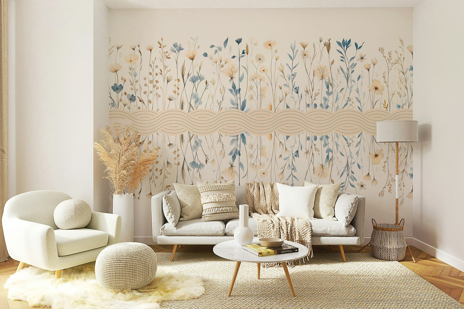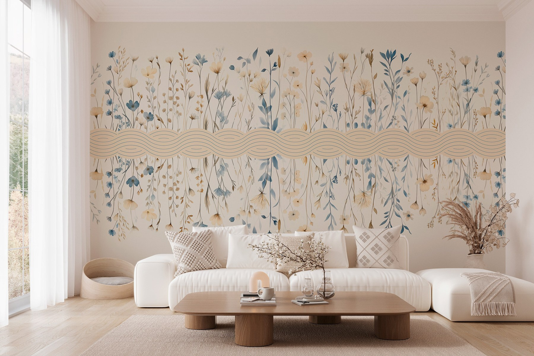 Μεταμορφώστε οποιονδήποτε χώρο σε μια γαλήνια απόδραση με αυτή την απολαυστική τοιχογραφία τοίχου με ένα floral μοτίβο σε γοητευτικά μπλε και απαλά λευκά χρώματα. Φανταστείτε να μπαίνετε σε ένα δωμάτιο όπου τα λεπτά λουλούδια λικνίζονται απαλά, φέρνοντας εκρήξεις ηρεμίας και χαράς. Η καταπραϋντική χρωματική παλέτα προκαλεί αυτό το χαλαρό συναίσθημα, σαν μια αεράτη μέρα που περνάτε περιπλανώμενοι σε έναν ήσυχο κήπο. Ιδανική για ένα άνετο σαλόνι ή ένα γαλήνιο υπνοδωμάτιο, αυτή η τοιχογραφία προσδίδει γοητεία και ιδιοτροπία. Ήρθε η ώρα να ξεφορτωθείτε τους απλούς τοίχους και να αγκαλιάσετε λίγη λουλουδένια μαγεία – οι τοίχοι σας αξίζουν την αναβάθμιση. Επιπλέον, είναι σαν να έχετε έναν κήπο που δεν μαραίνεται ποτέ!