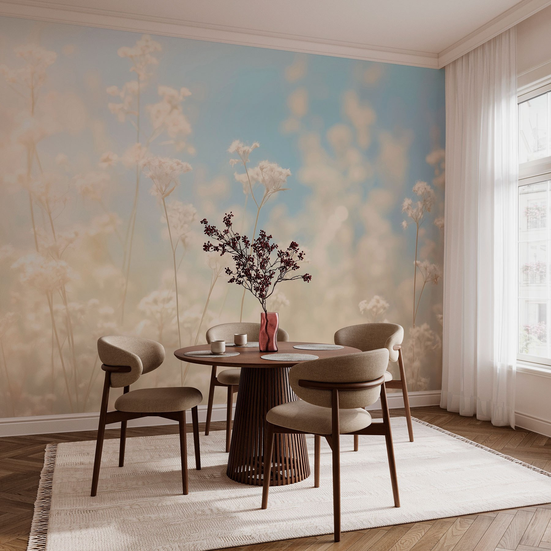 Μεταμορφώστε οποιοδήποτε δωμάτιο σε μια γαλήνια απόδραση με την τοιχογραφία “Delicate Blooms in Dreamy Light”. Φανταστείτε να μπαίνετε σε έναν χώρο όπου τα απαλά λουλούδια χορεύουν απαλά σε μια ζεστή λάμψη, φέρνοντας τη φύση στο εσωτερικό του σπιτιού – μιλάμε για ανύψωση της διάθεσης! Η ονειρική ατμόσφαιρα αυτής της τοιχογραφίας κάνει την αίσθηση της άνοιξης όλο το χρόνο. Φανταστείτε να πίνετε τσάι, περιτριγυρισμένοι από αυτό το ειρηνικό σκηνικό, νιώθοντας τις ανησυχίες σας να απομακρύνονται. Κάθε ματιά μπορεί να θυμίζει τεμπέλικα απογεύματα σε έναν ηλιόλουστο κήπο, προσκαλώντας μια αίσθηση ηρεμίας και γαλήνης. Είναι ιδανικό για να προσθέσετε μια πινελιά από τη γοητεία της φύσης σε σαλόνια ή υπνοδωμάτια. Ένα απολαυστικό καταφύγιο σας περιμένει!