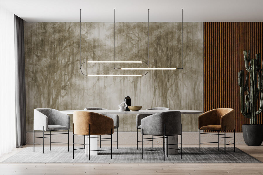 Μεταμορφώστε οποιονδήποτε χώρο σε μια γαλήνια απόδραση με αυτή τη μαγευτική τοιχογραφία τοίχου με μια ομάδα δέντρων τυλιγμένη σε μια απαλή ομίχλη. Είναι σαν να μπαίνετε σε ένα γαλήνιο δάσος, όπου στο βάθος παίζουν οι απαλοί ψίθυροι της φύσης. Φανταστείτε να πίνετε τσάι ή να ξεφυλλίζετε ένα βιβλίο, ενώ αυτές οι όμορφες σιλουέτες προσθέτουν μια πινελιά ηρεμίας στους τοίχους σας. Οι διακριτικές αποχρώσεις δημιουργούν μια φιλόξενη ατμόσφαιρα, ιδανική για χαλάρωση ή βαθιές συζητήσεις. Είτε πρόκειται για ένα άνετο σαλόνι είτε για ένα ήσυχο γραφείο, αυτή η τοιχογραφία προσκαλεί ζεστασιά και ακριβώς τη σωστή ποσότητα μυστηρίου. Αγκαλιάστε την ομορφιά της φύσης στο σπίτι σας!