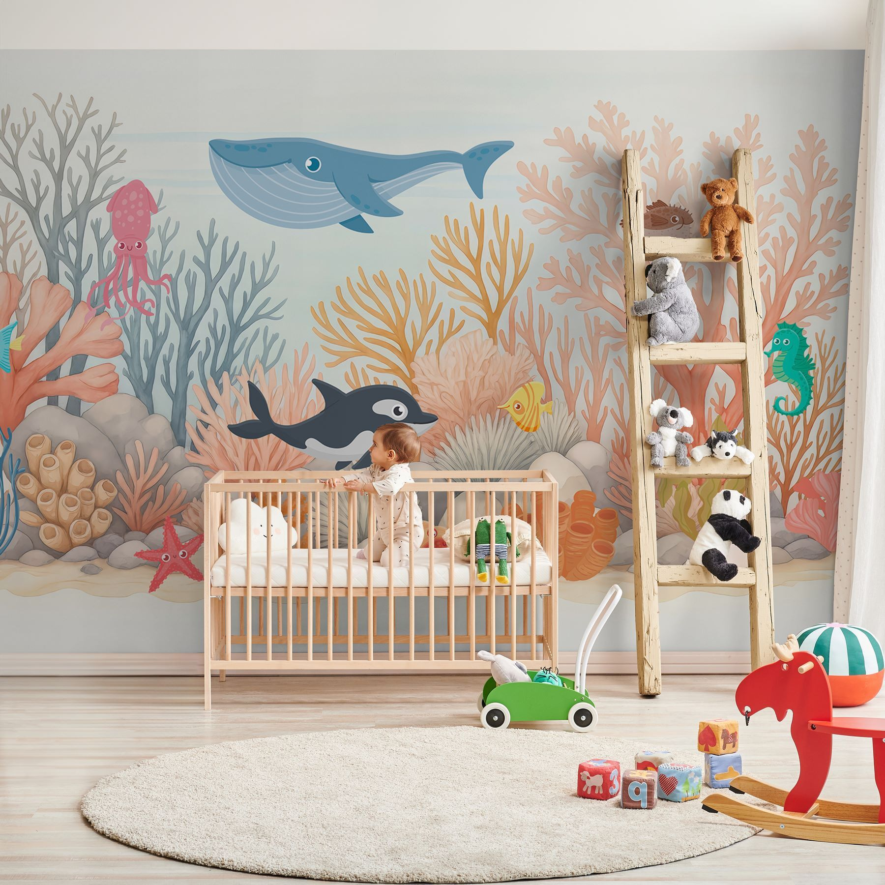 Βυθιστείτε σε έναν ζωντανό υποβρύχιο κόσμο με αυτή την απολαυστική τοιχογραφία τοίχου με παιχνιδιάρικα ψάρια και αλλόκοτα κοράλλια. Φανταστείτε το παιδικό δωμάτιο να μεταμορφώνεται σε μια ζωντανή ωκεάνια σκηνή, μεταφέροντας τα μικρά παιδιά σε μια μαγική παραλία κάθε μέρα. Είναι σαν να φέρνετε ένα κομμάτι της θάλασσας μέσα στο σπίτι – χωρίς την άμμο στα δάχτυλα των ποδιών σας! Οι γονείς θα εκτιμήσουν το πώς εξάπτει τη φαντασία και την περιέργεια, ενώ τα παιδιά θα λατρέψουν να εντοπίζουν πολύχρωμα θαλάσσια πλάσματα. Ιδανικό για να προσθέσετε αυτή την πινελιά διασκέδασης σε παιδικά δωμάτια ή παιδικούς σταθμούς, είναι μια χαρούμενη υπενθύμιση ότι κάθε μέρα μπορεί να μοιάζει λίγο με περιπέτεια στην παραλία. Απλά γοητευτικό!
