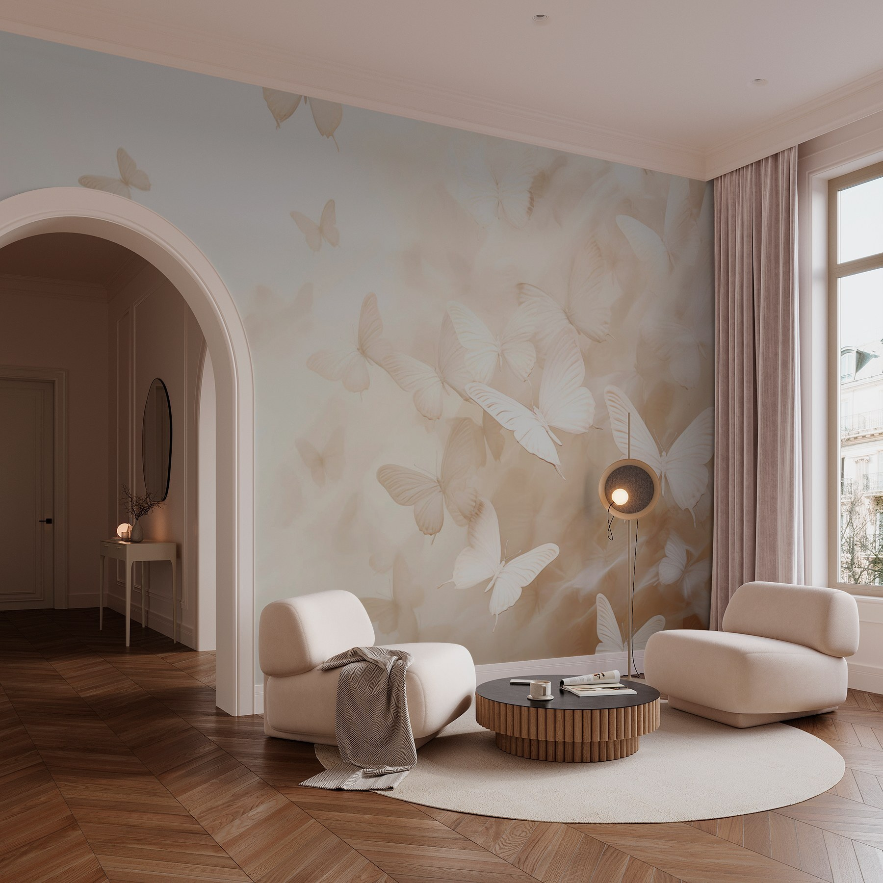 Φανταστείτε μια ζεστή γωνιά ανάγνωσης ή ένα ήρεμο υπνοδωμάτιο, όπου αυτά τα ελαφριά, ρέοντα σχέδια προσθέτουν μια ηρεμιστική πινελιά. Κάθε ματιά στις πεταλούδες πυροδοτεί μια αίσθηση ελευθερίας και θαυμασμού, σαν να μπορούν να πετάξουν ανά πάσα στιγμή. Οι φίλοι θα περπατήσουν, θα σταματήσουν και θα αναστενάξουν – είναι μια γλυκιά μικρή απόδραση που περιμένει να συμβεί. Τι ευχάριστος τρόπος για να κάνετε κάθε τοίχο να νιώθει ζωντανός!