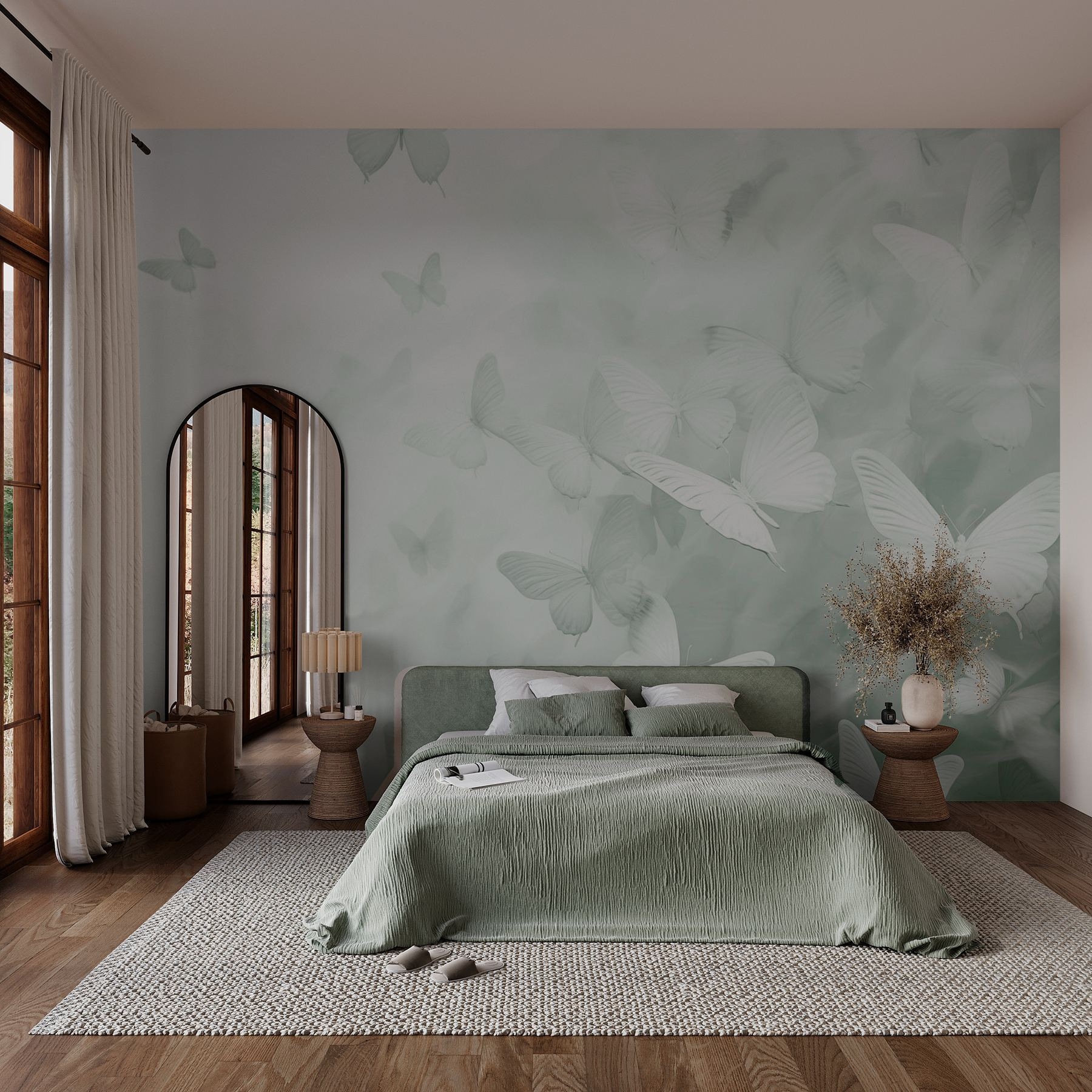 Μεταμορφώστε το χώρο σας με αυτή τη μαγευτική τοιχογραφία με μια φουρτούνα πεταλούδων που πετούν. Είναι σαν να μπαίνετε σε ένα γαλήνιο όνειρο – φανταστείτε να πίνετε τον πρωινό σας καφέ περιτριγυρισμένοι από αυτά τα ντελικάτα πλάσματα, που αιωρούνται απαλά σε ένα ήρεμο σκηνικό. Ιδανική για μια ζεστή γωνιά ανάγνωσης ή για να φωτίσει έναν διάδρομο, αυτή η τέχνη φέρνει μια ελαφρότητα που είναι τόσο αναζωογονητική όσο και ηρεμιστική. Οι φίλοι θα χαμογελάσουν και θα σχολιάσουν πώς προσθέτει μια αέρινη αίσθηση στο σπίτι σας. Όλα έχουν να κάνουν με αυτές τις μικρές πινελιές που κάνουν τη ζωή πιο όμορφη, σωστά; Σε ποιον δεν θα άρεσε λίγο καπρίτσιο να φτερουγίζει τριγύρω;