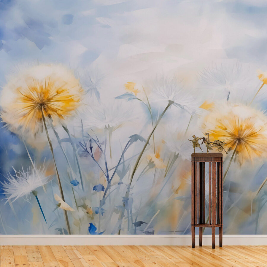 Φωτίστε ένα δωμάτιο με τις “Τοιχογραφίες κίτρινων και λευκών λουλουδιών”. Φανταστείτε να μπαίνετε σε ένα πεδίο με ηλιοφάνεια και ντελικάτα πέταλα κάθε φορά που περνάτε από εκεί. Το απαλό σχέδιο υδατογραφίας αυτής της τοιχογραφίας φέρνει αβίαστα την ύπαιθρο στο εσωτερικό, κάνοντας κάθε χώρο να αισθάνεται πιο ζωντανός. Φανταστείτε τη ζεστή γωνιά ανάγνωσης να μεταμορφώνεται – φανταστείτε να χάνεστε σε ένα βιβλίο με αυτές τις απαλές αποχρώσεις να σας περιβάλλουν. Είναι σαν να έχετε λίγη από τη γοητεία της φύσης στον τοίχο σας. Ιδανική για μια χαρούμενη ατμόσφαιρα, αυτή η τοιχογραφία προσκαλεί σε χαμόγελα, ονειροπολήσεις και ίσως ακόμη και σε ένα αυθόρμητο χορευτικό πάρτι.