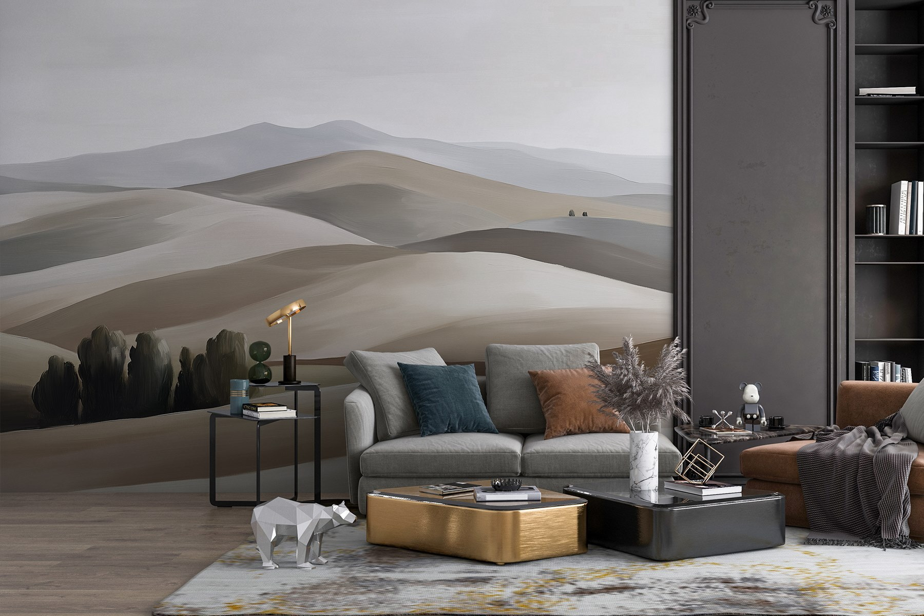 Μεταμορφώστε οποιονδήποτε τοίχο σε μια γαλήνια απόδραση με αυτή την υπέροχη τοιχογραφία με τους κυλιόμενους λόφους και τα δέντρα. Φέρνει τη μεγάλη ύπαιθρο απευθείας στο χώρο σας – ιδανικό για να ονειροπολήσετε ή απλά να χαλαρώσετε μετά από μια κουραστική μέρα. Φανταστείτε να πίνετε τον καφέ σας απολαμβάνοντας τους απαλούς, υποτονικούς τόνους που δημιουργούν μια γαλήνια ατμόσφαιρα. Αυτή η τοιχογραφία δεν κάνει απλώς μια δήλωση- ψιθυρίζει ηρεμία. Είναι σαν να έχετε ένα προσωπικό τοπίο που αλλάζει την ατμόσφαιρα του δωματίου σας, κάνοντάς το να αισθάνεται ανοιχτό και φρέσκο. Ιδανική για τους λάτρεις της φύσης ή για όποιον θέλει να προσθέσει μια πινελιά ηρεμίας στο σπίτι του.