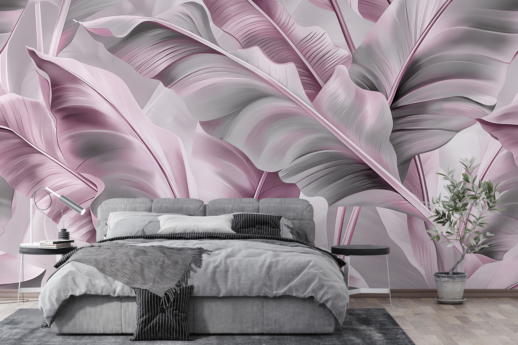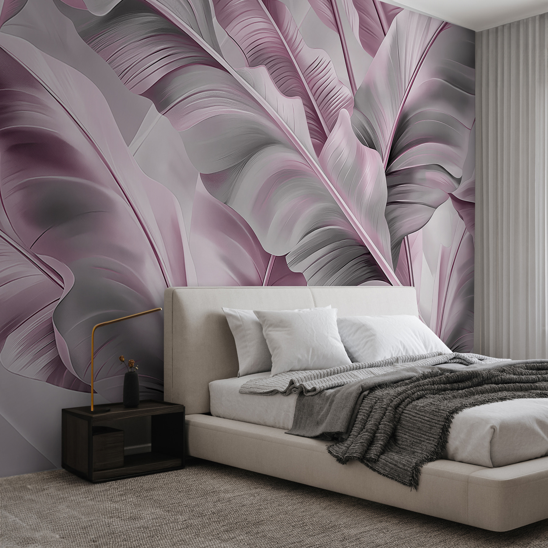 Μεταμορφώστε οποιονδήποτε χώρο σε μια όαση ηρεμίας με την τοιχογραφία “Whispers of Pink and Gray”. Φανταστείτε να μπαίνετε σε έναν γαλήνιο κόσμο όπου τα απαλά ροζ και τα διακριτικά γκρι φύλλα μοιάζουν να χορεύουν στους τοίχους σας. Είναι σαν να φέρνετε ένα κομμάτι της φύσης μέσα στο σπίτι, χωρίς τα έντομα και τη βρωμιά. Φανταστείτε να φιλοξενείτε φίλους, και καθώς θαυμάζουν την τοιχογραφία, το δωμάτιο ξαφνικά μοιάζει πιο φιλόξενο – ιδανικό για άνετες συζητήσεις και γέλια. Είτε πρόκειται για ένα σαλόνι είτε για μια γαλήνια γωνιά ανάγνωσης, αυτή η τοιχογραφία προσθέτει ακριβώς τη σωστή πινελιά κομψότητας και ηρεμίας. Ποιος χρειάζεται κήπο όταν έχετε αυτά τα υπέροχα φύλλα;