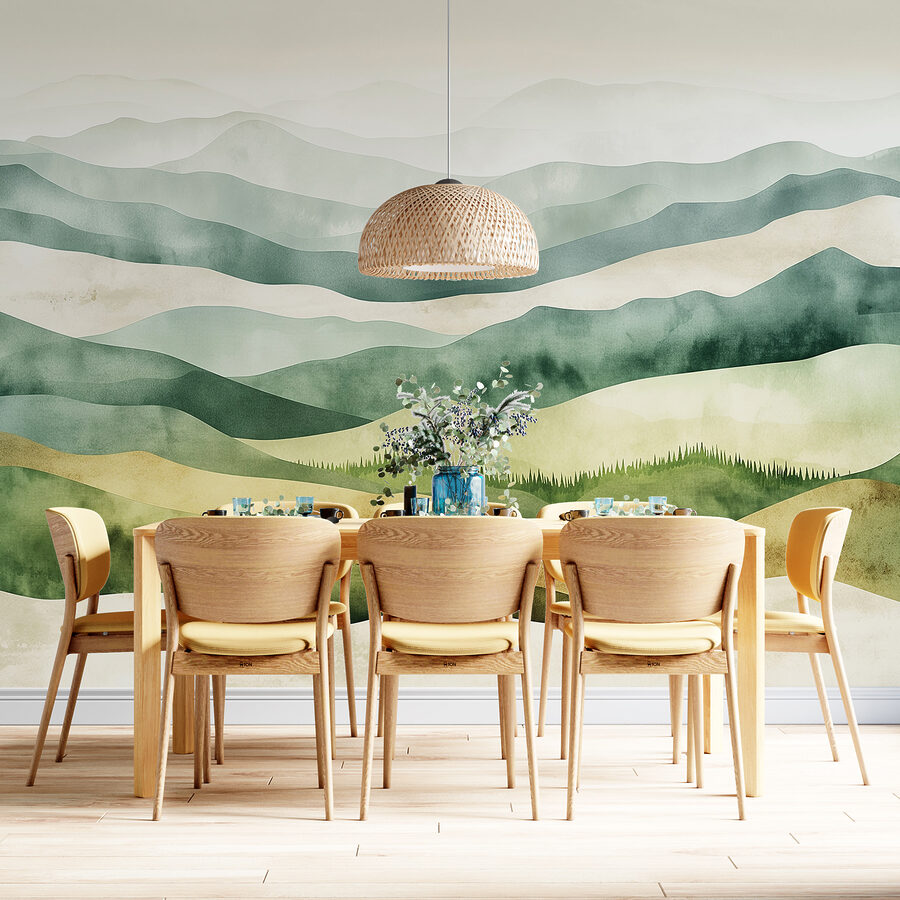 Φανταστείτε να έχετε αυτή την εκπληκτική τοιχογραφία ακουαρέλας, με την εύστοχη ονομασία “Ταπετσαρίες w07950”, στον τοίχο σας – είναι σαν να φέρνετε την γαλήνια ομορφιά της φύσης στους εσωτερικούς χώρους! Αυτή η τοιχογραφία, τοποθετημένη στις κατηγορίες “Δημοφιλείς τοιχογραφίες τοίχου” και “Τοιχογραφίες τοίχου φύση”, είναι επίσης μια απόλαυση για τους οπαδούς της τέχνης ακουαρέλας. Στρώματα από ομιχλώδεις λόφους κυλούν απαλά στον καμβά, αναμειγνύοντας αποχρώσεις του πράσινου και του απαλού μπεζ με τρόπο που απλά καταπραΰνει την ψυχή.