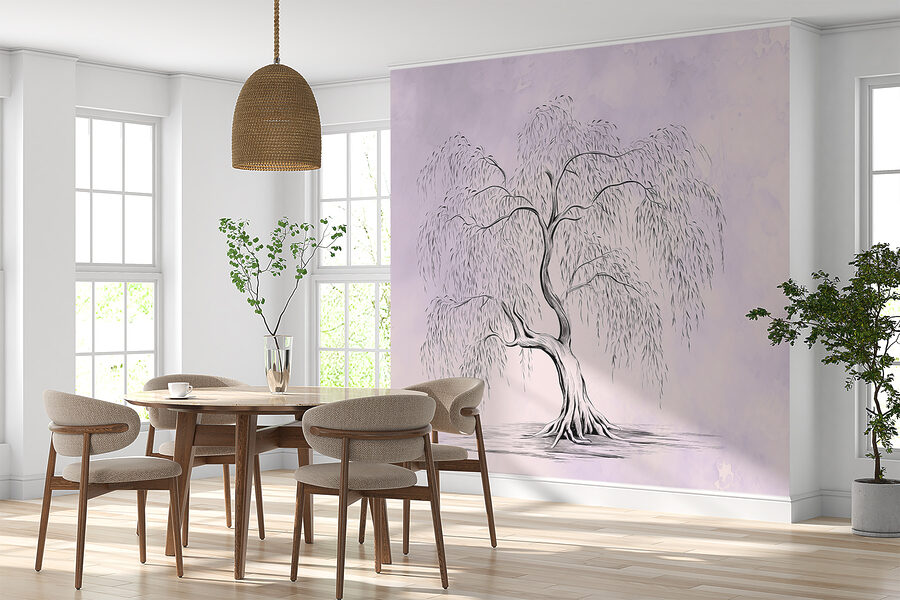 Το απαλό, ξεπλυμένο φόντο με τις αποχρώσεις της λεβάντας και της κρέμας δημιουργεί αυτή τη γαλήνια, σχεδόν μαγική διάθεση. Μεταμορφώνει αμέσως ένα δωμάτιο σε ένα ηρεμιστικό καταφύγιο. Μπορείτε να φανταστείτε να ξυπνάτε με αυτό το θέαμα κάθε μέρα; Ή ίσως να το έχετε σε μια ζεστή γωνιά ανάγνωσης όπου μπορείτε να χαθείτε σε ένα βιβλίο με το γαλήνιο δέντρο να σας κρατάει συντροφιά; Υπάρχει κάτι τόσο προσγειωτικό και καταπραϋντικό σε αυτό.